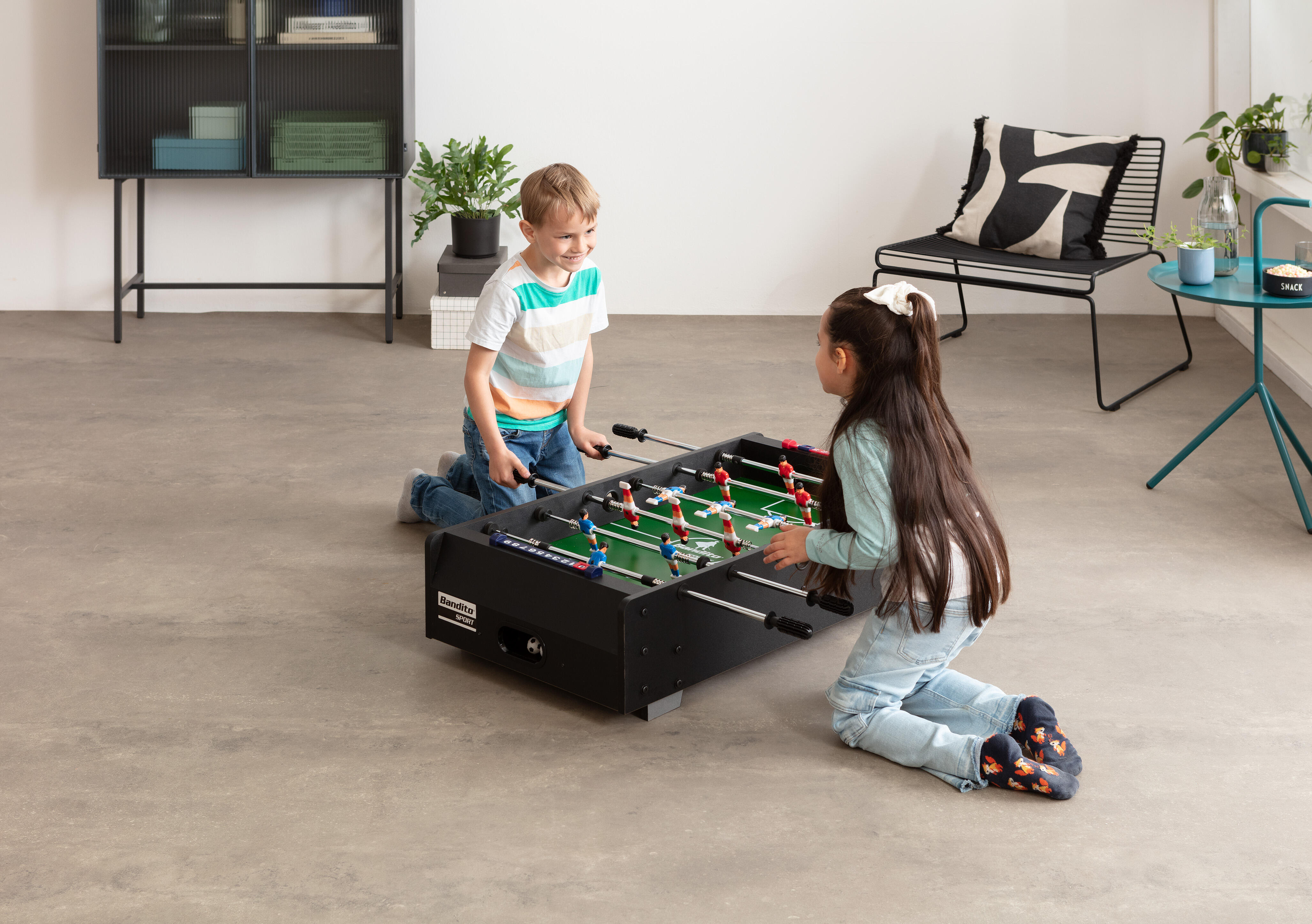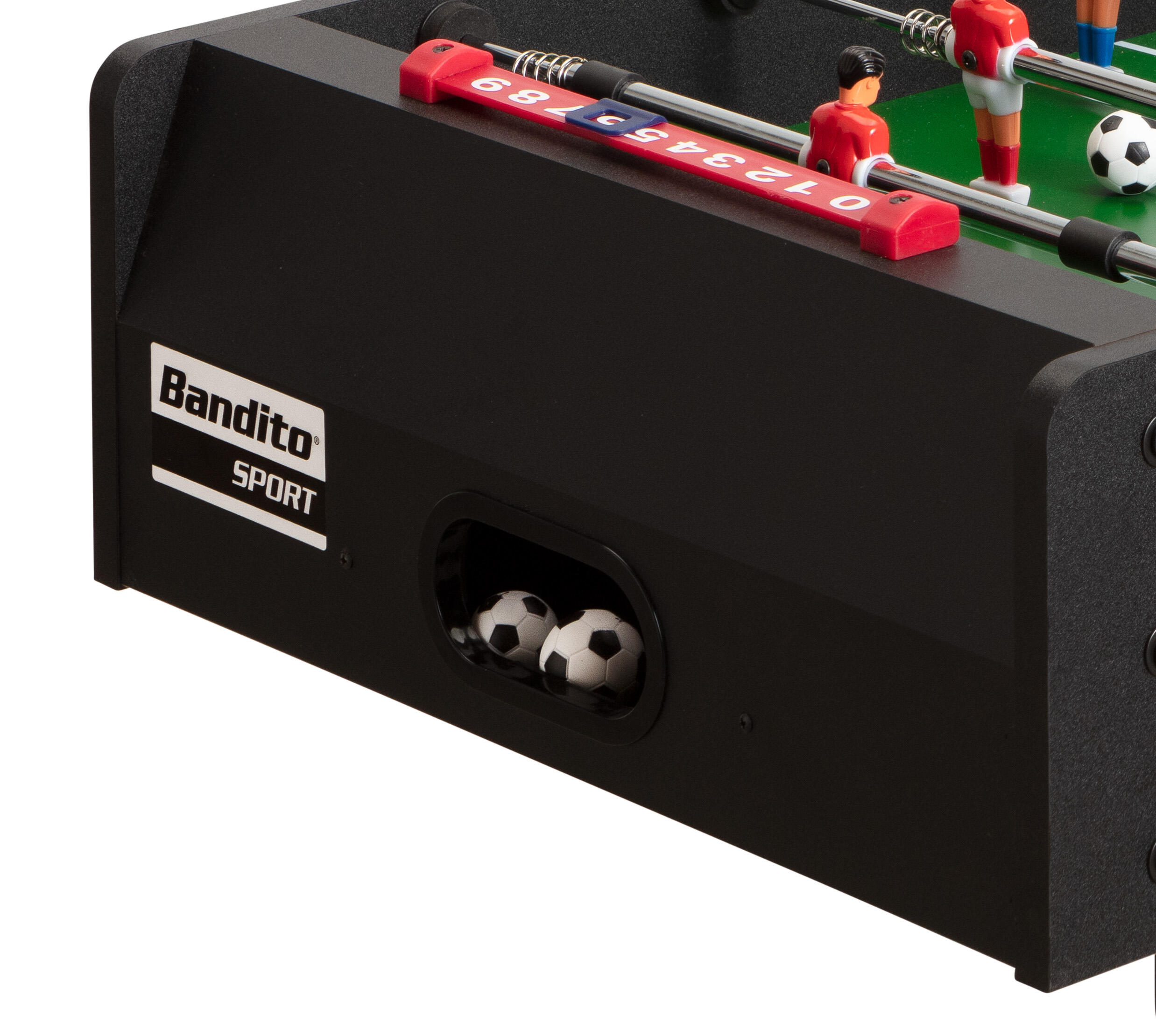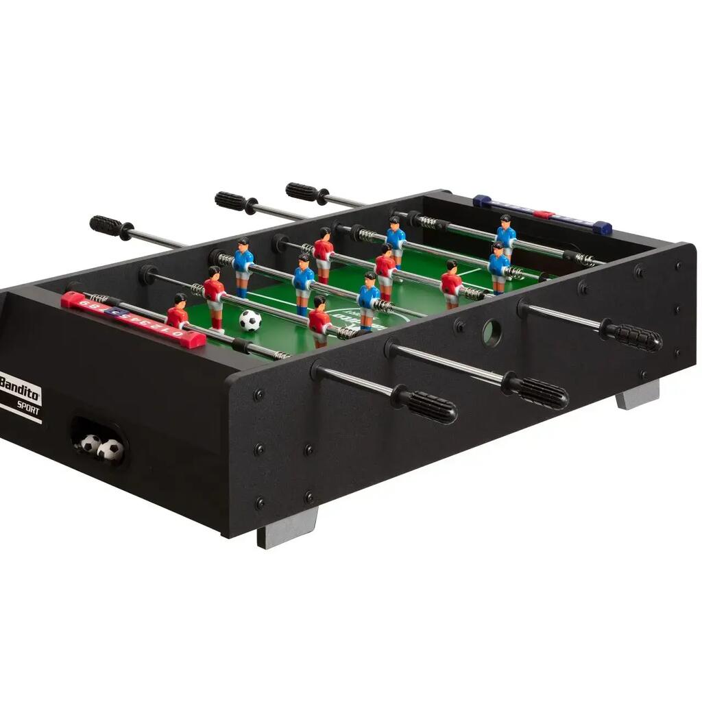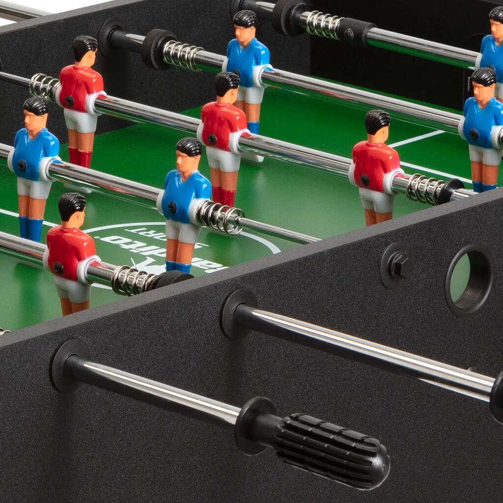 Compact table football for all ages, Extremely sturdy thanks to telescopic bars, Players can be individually mounted and replaced, Robust core with cherry wood appearance