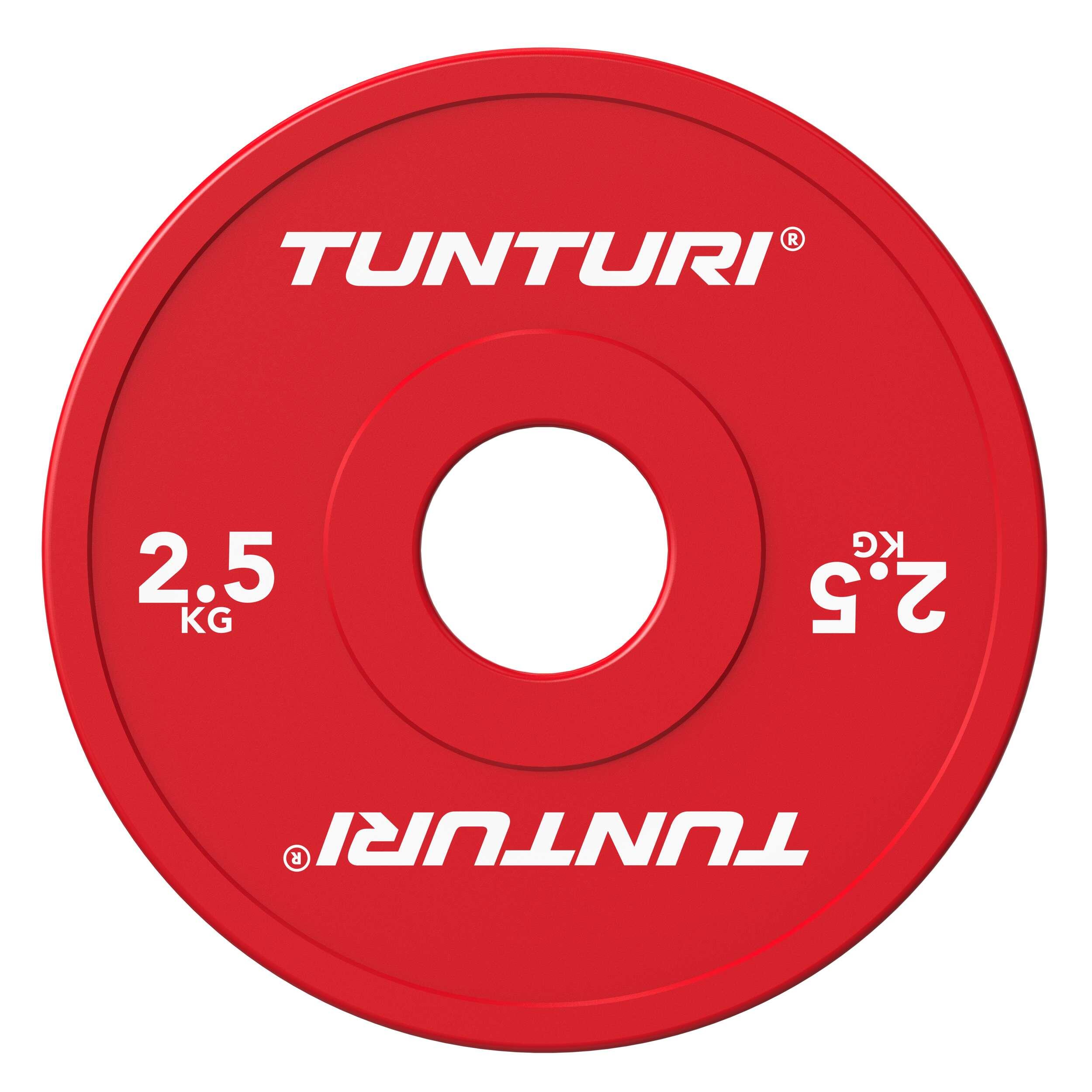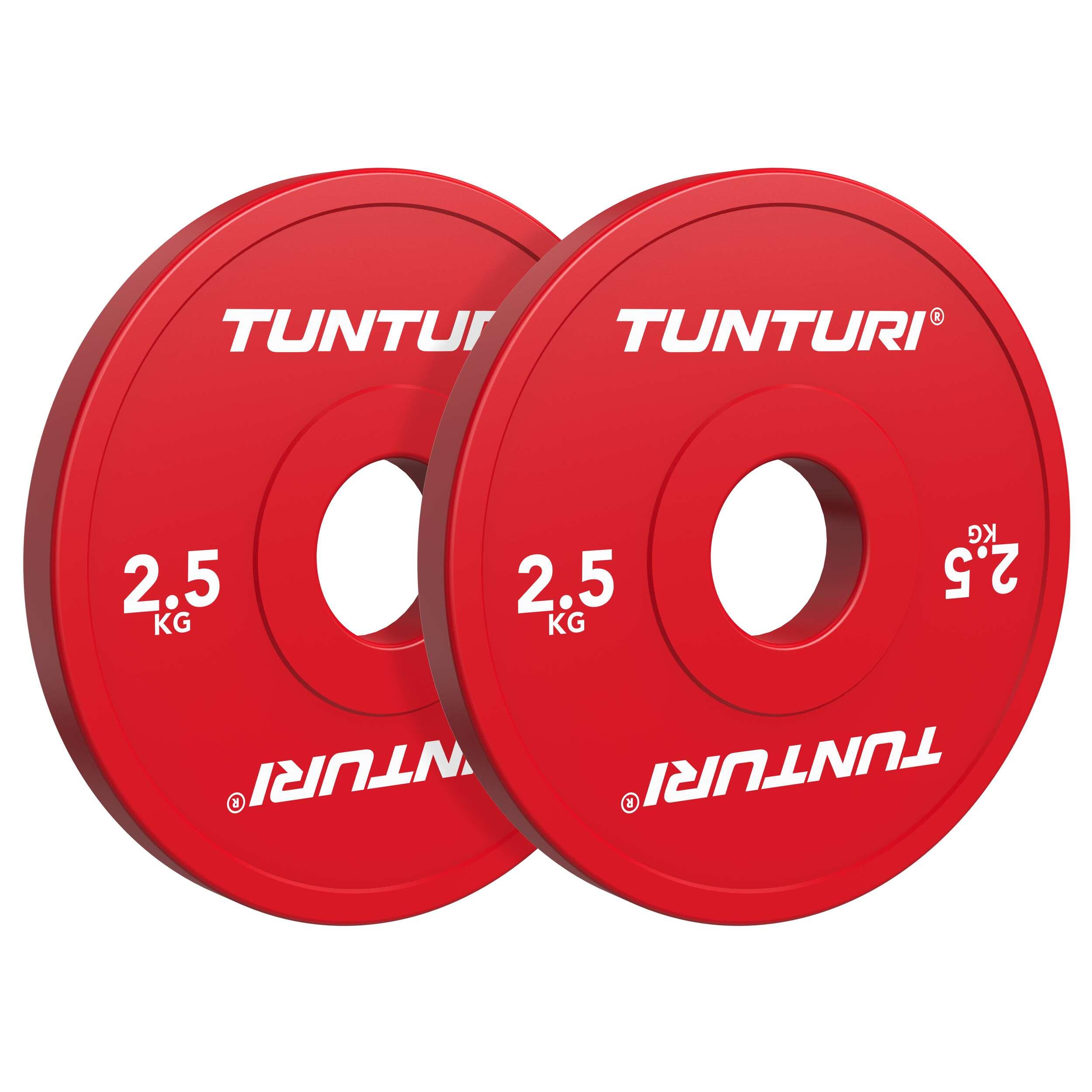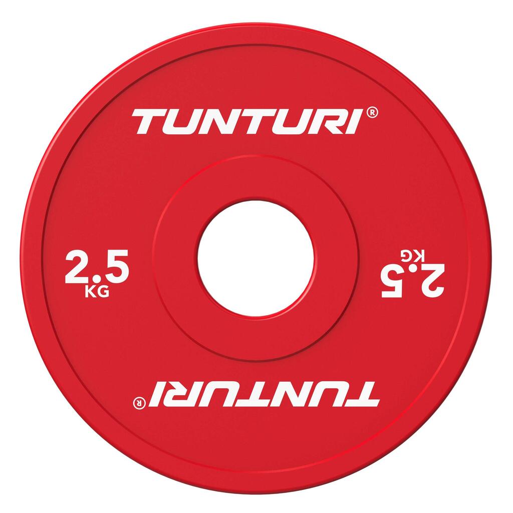 **Progress your training with the Tunturi Platinum Fractional Weight Plates of 2.5 kg. These red plates are specially designed for precise weight increases during strength training and are often combined with bumper plates for maximum accuracy.**