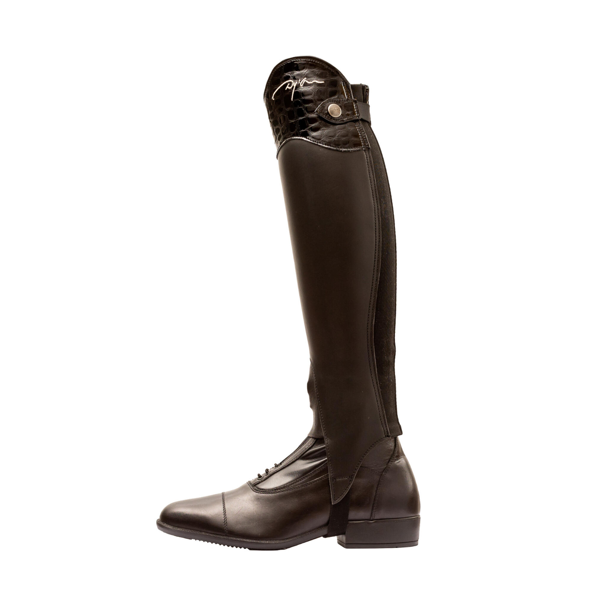 Discover the ultimate in comfort with mini-chaps in Dy'on Exel leather, the elegant touch to your top-quality women's riding gear.