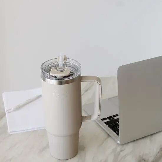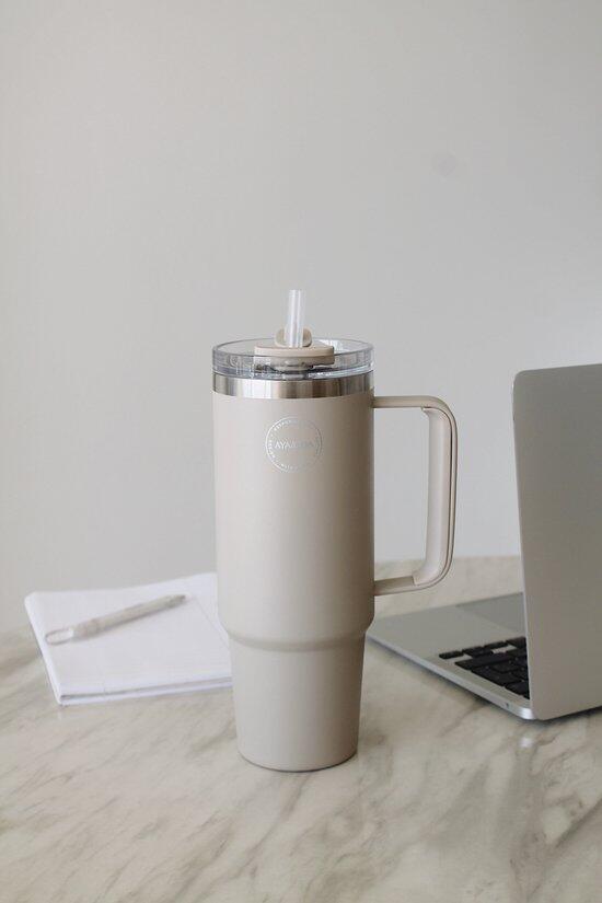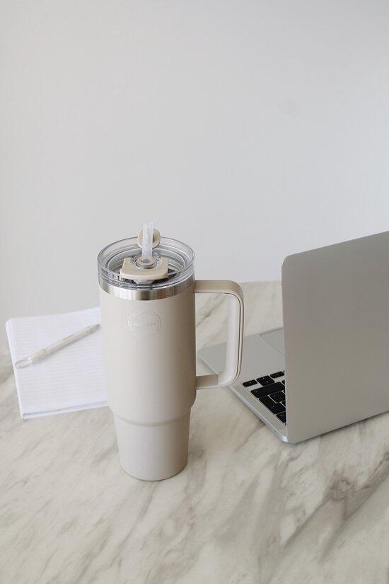 Thermobeker met rietje 885ml Cream Beige