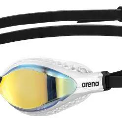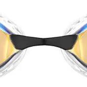 Every little thing counts when you're racing. From the fit of your swimsuit to the surface of your cap. We developed our new Air Speed Mirror Goggles to feel like you're not even wearing them so you can keep your mind on the race. These competitive goggles have special seals engineered with a honeycomb structure for enhanced adhesion to your face's shape. The honeycomb cells are small by design for a secure fit and zero interference with your performance. Plus they reduce pressure and potential pain on sensitive areas. Created with mirrored wide lenses for expanded lateral vision and reduced glare, up your game with this sleek, hydrodynamic design.Composition: 50% Polycarbonate, 30% Thermoplastic Rubber, 20% Silicone
