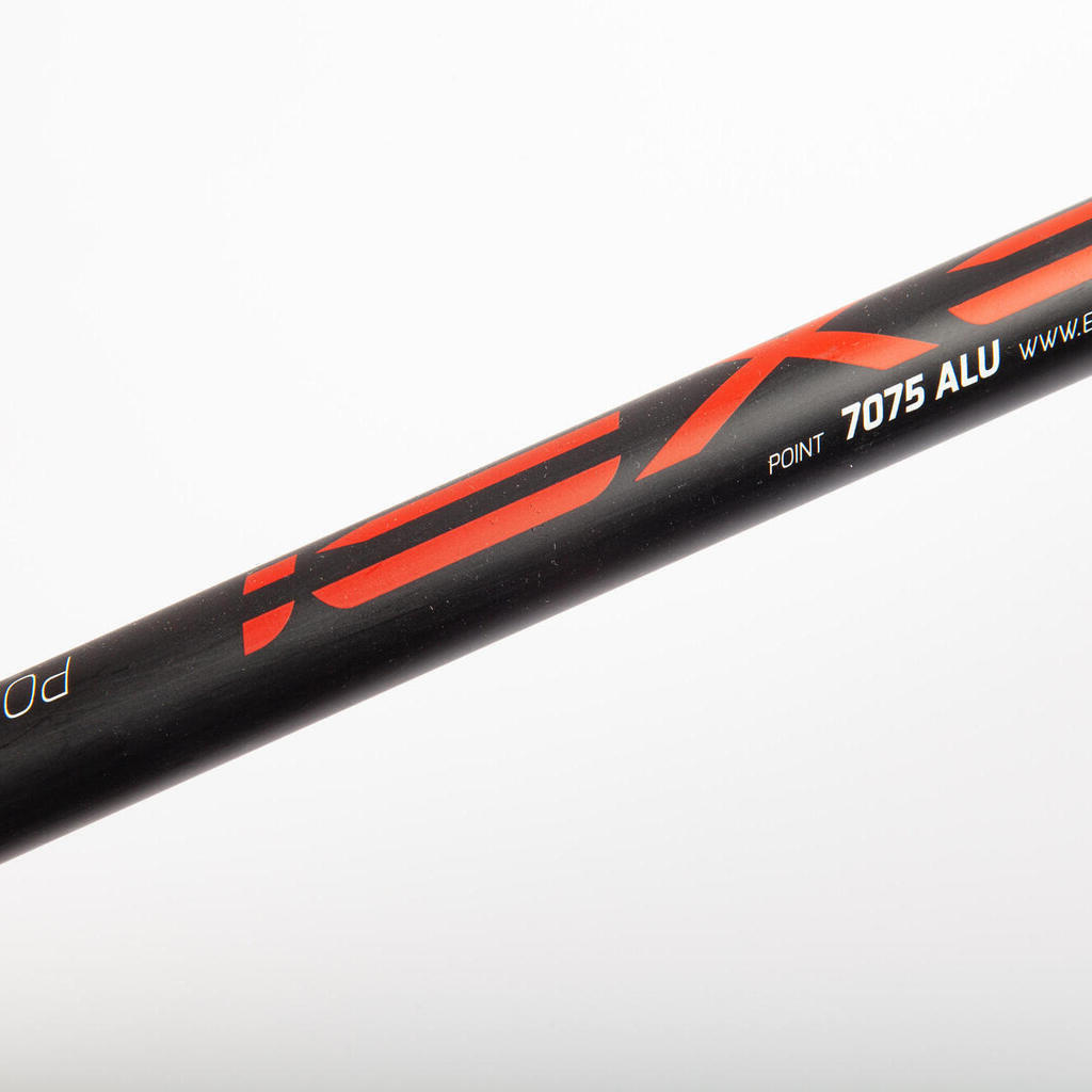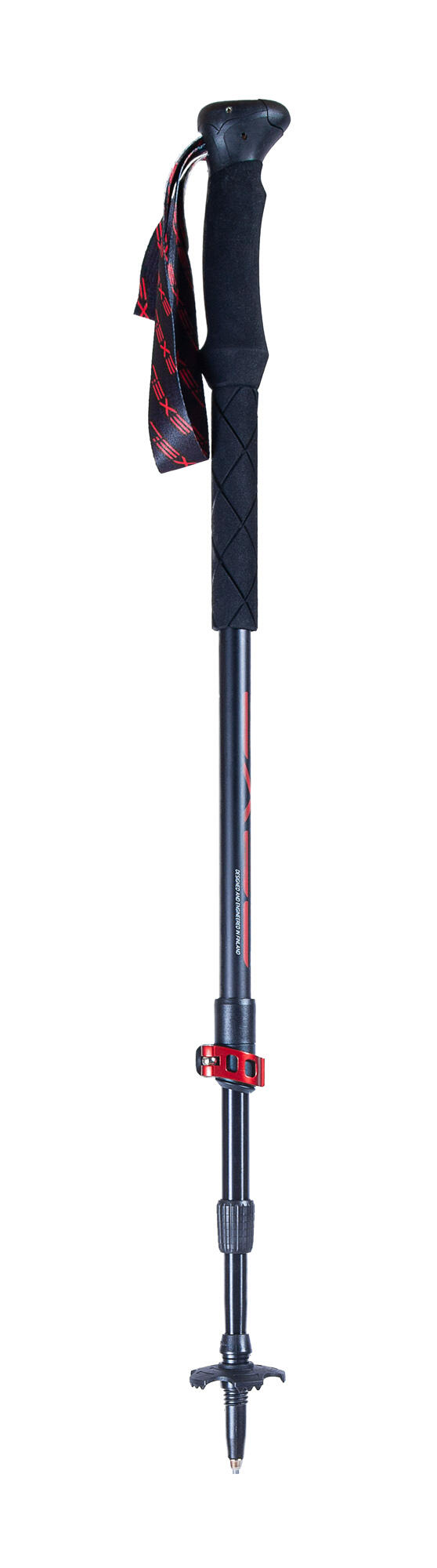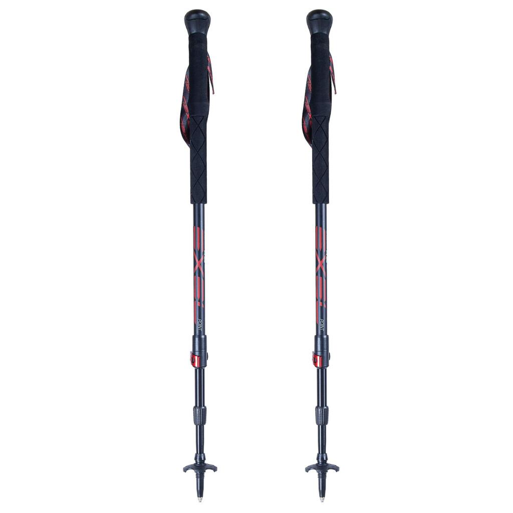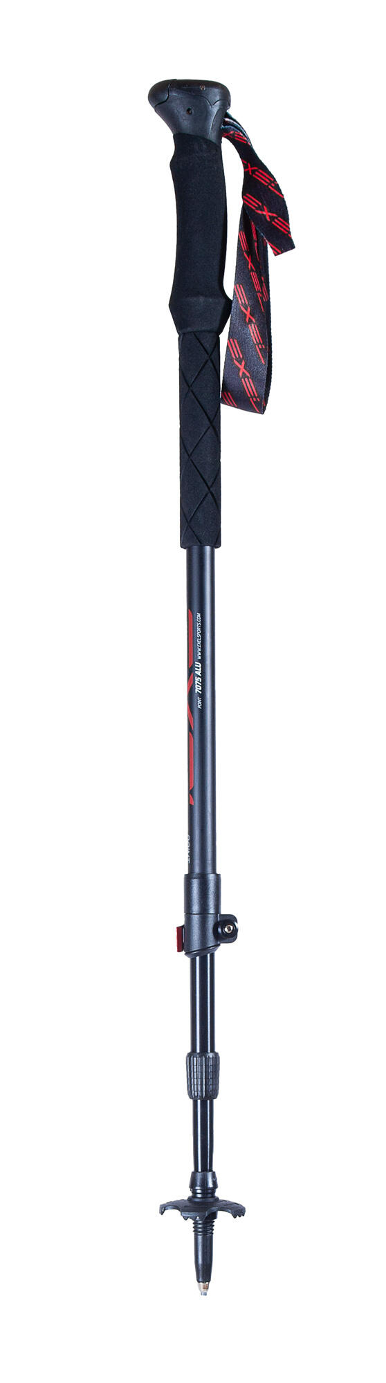 3-section aluminium poles, adjustable from 100 to 135 cm, with double breathable handle and anti-shock system to prevent vibrations.