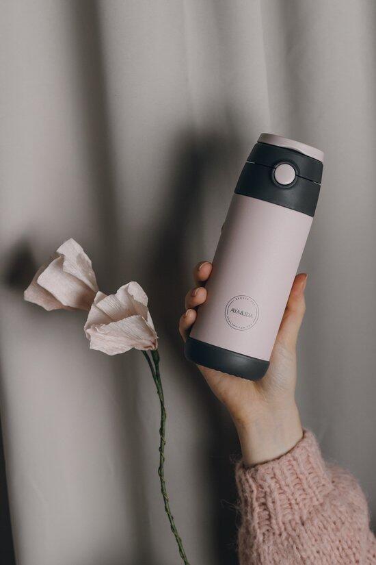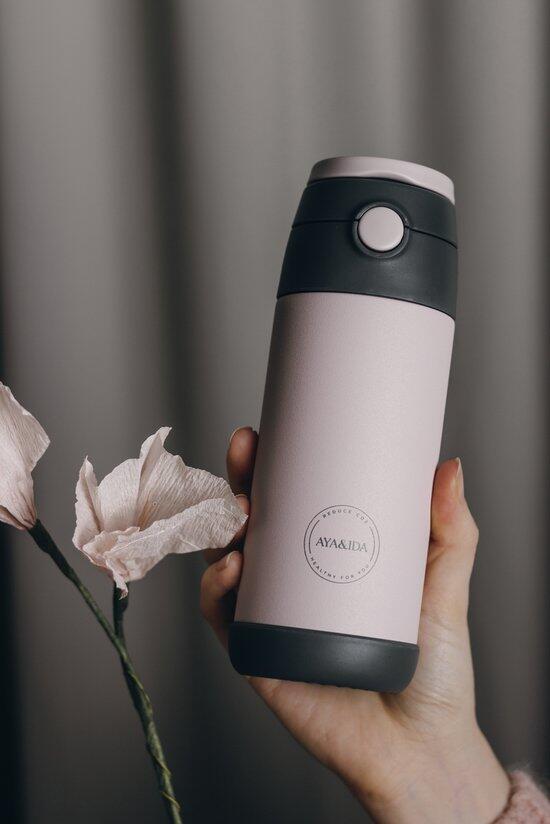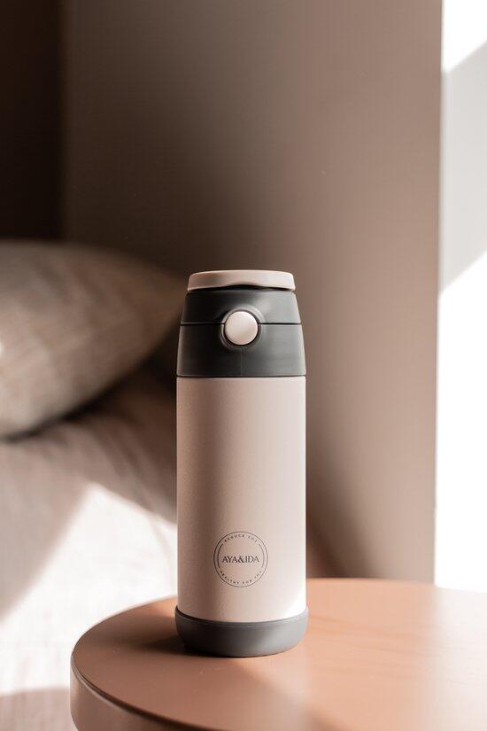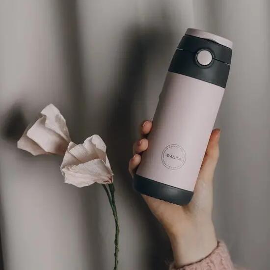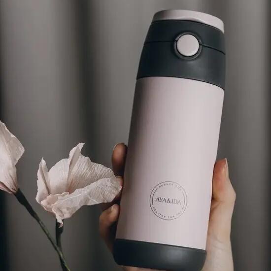 Elegant 885 ml thermocup with straw – perfect for hot and cold drinks on the go.