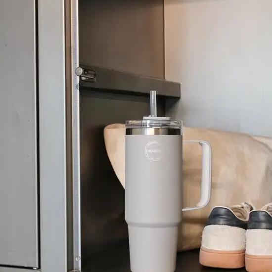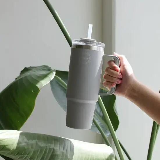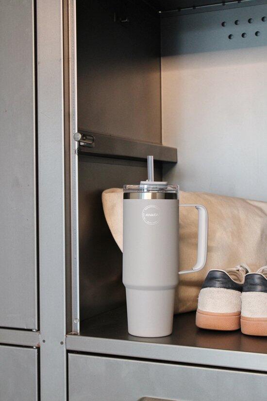 Thermobeker met rietje 885ml Light Grey