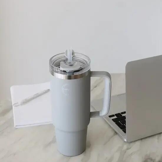 885 ml thermocup with straw – stylish, leakproof and suitable for hot and cold drinks.