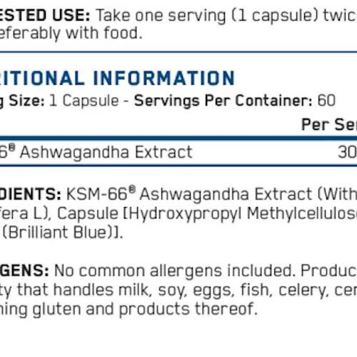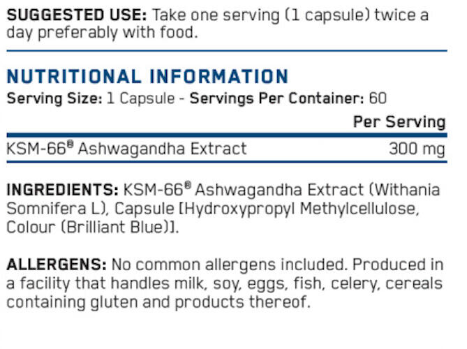 Applied Nutrition Ashwagandha KSM-66 | Capsule product with neutral nutritional information
