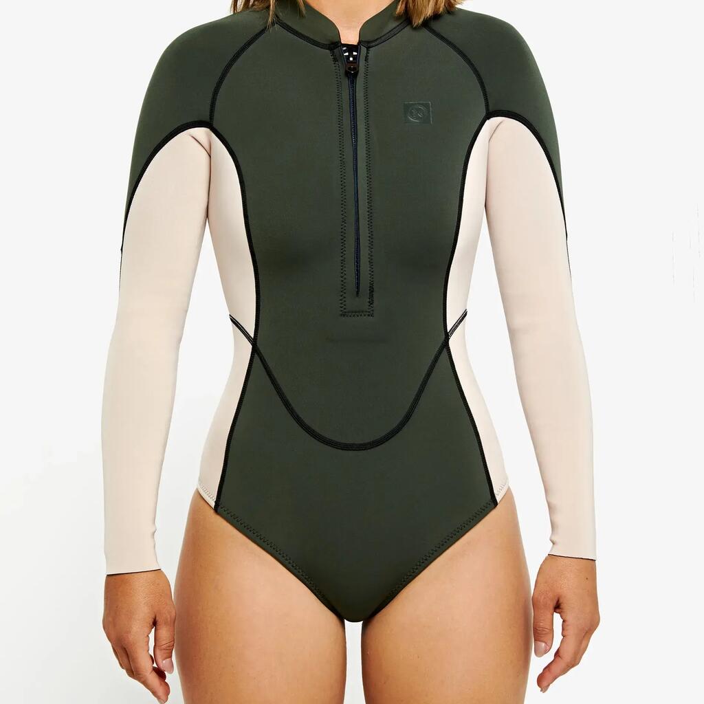 Women’s 2/2mm front zip wetsuit with C-FLEX 2.0 lining, ideal for warm waters of 18–22°C. Comfortable and technical design.