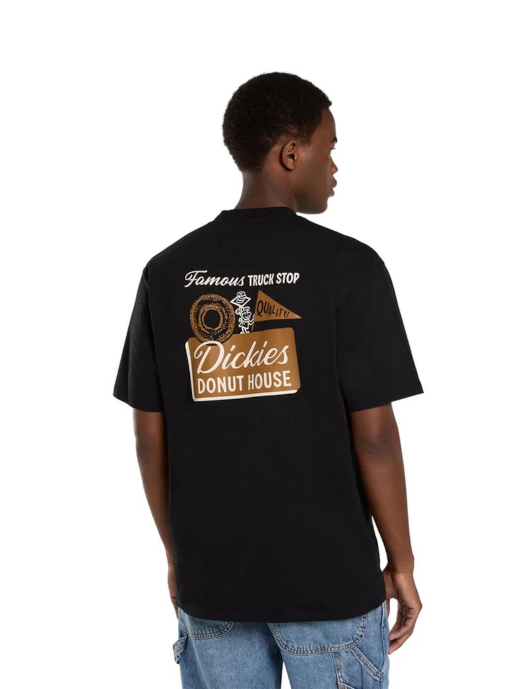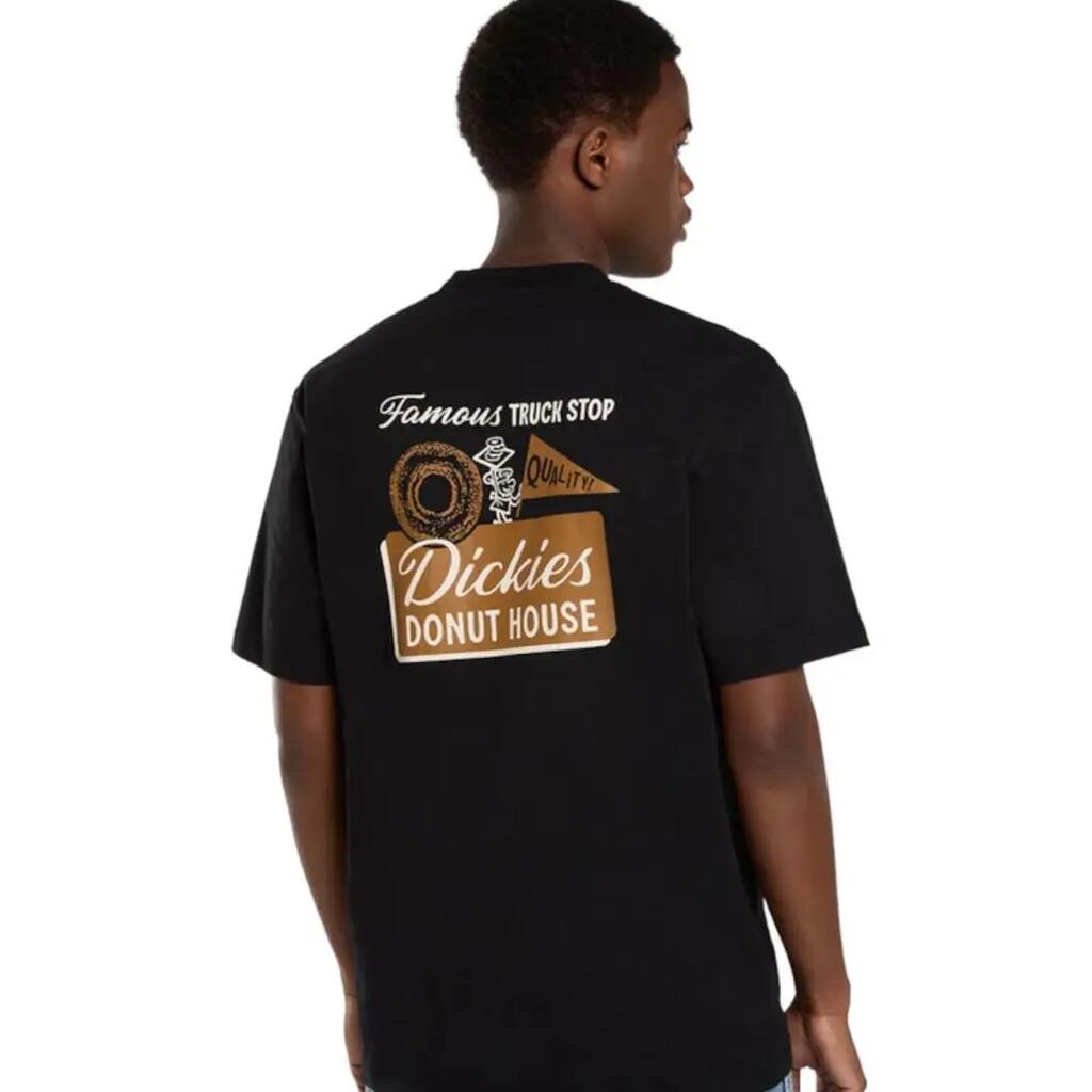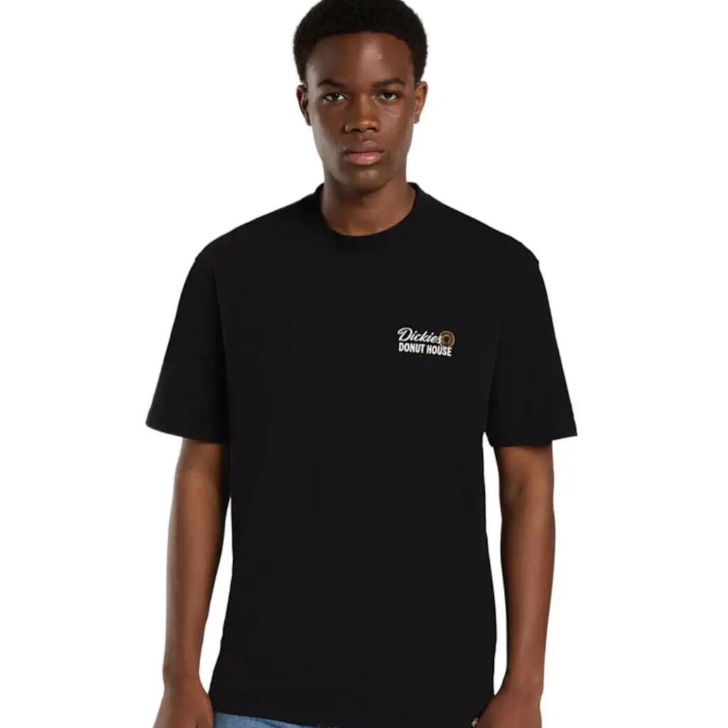 Black Dickies brand t-shirt with a large design on the back. Relaxed fit and made of cotton.