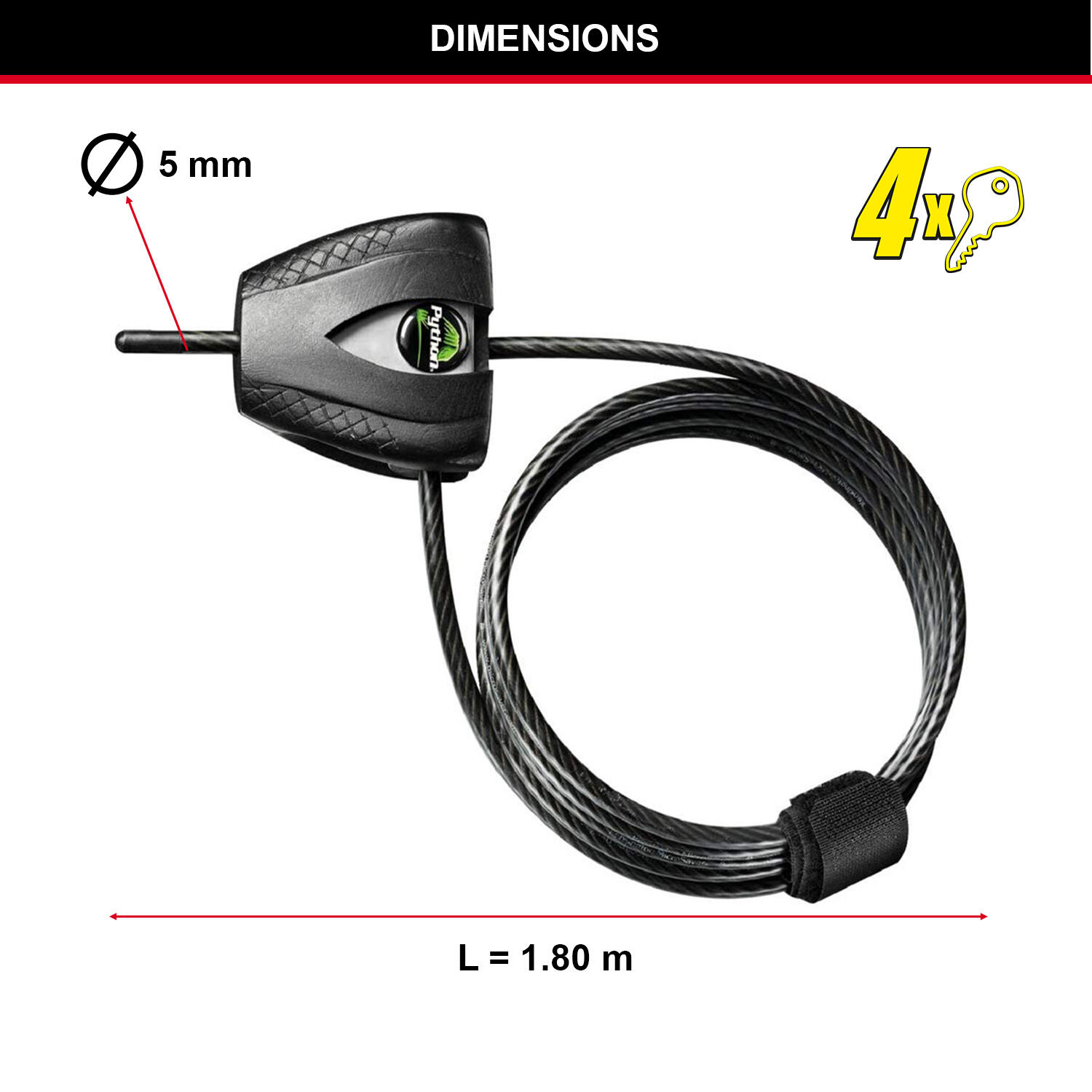 Security Cable with Key Lock [Adjustable Locking Cable from 30 cm to 1.8 m] [Python] 8417EURDPRO - Best Used to Secure Sports Equipment, Tools and Outdoor Furniture