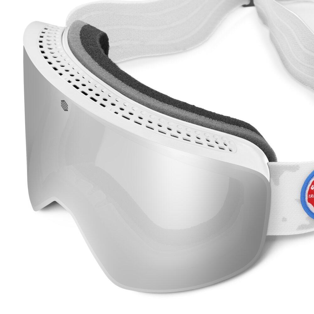 GX Kids Whitehorse children’s ski goggles in white with lightweight TPU frame, cylindrical anti-fog and anti-scratch lens, UV400 protection and triple-density foam for optimal comfort.