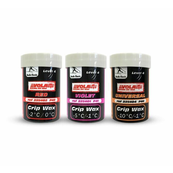 Optimize your grip and glide with the set of 3 grip stroller waxes Vola for classic ski enthusiasts.