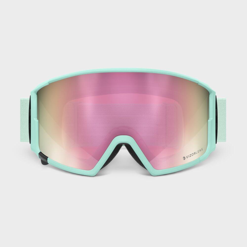 G3 Gulmarg green ski goggles, lightweight TPU frame, spherical polycarbonate lens with magnetic mount, anti-fog treatment and UV400 protection for skiing and snowboarding.