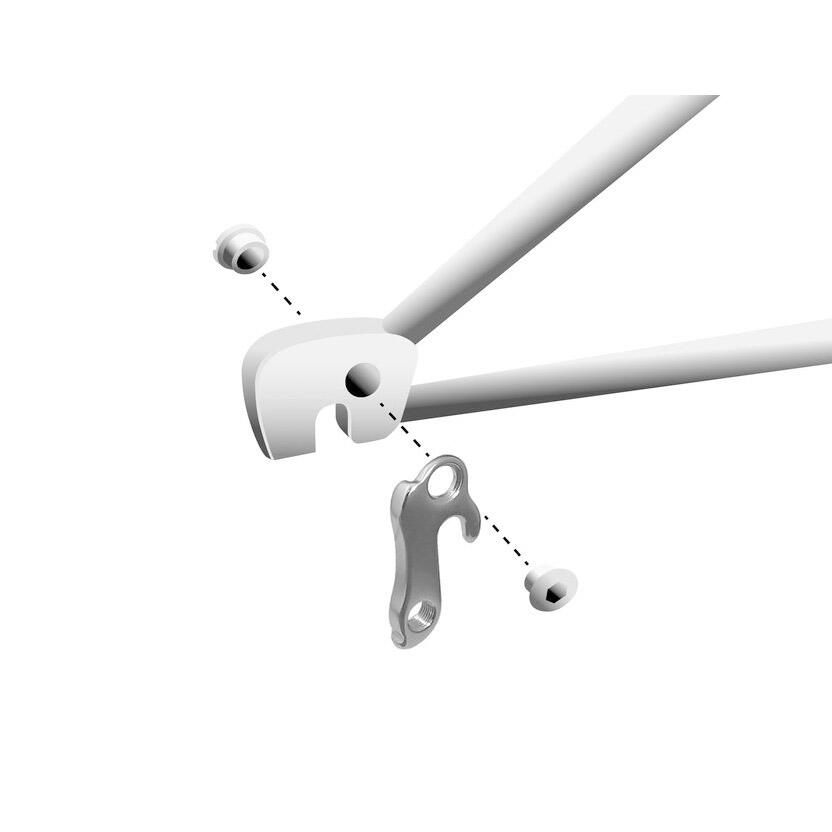 Union derailleur hanger GH-036 in aluminium with M8x0.75 screw set.