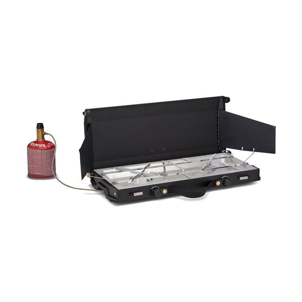 Introducing the Primus Alika 2 Burner Camping Stove, a versatile culinary marvel tailored for sociable outdoor cooking. Its spacious cooking surface easily accommodates 28 cm pots and pans, ideal for extensive meal preparation, while its compact and streamlined design makes it travel-friendly for cooking on the go.