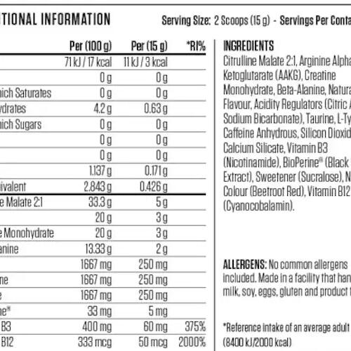 Applied Nutrition Pump 3G | Powder product with declared nutritional information