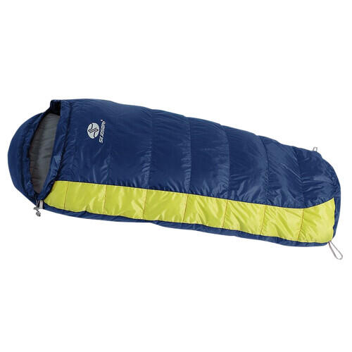 A down mummy sleeping bag with an H-construction, specially designed for children up to a height of 85 cm.
