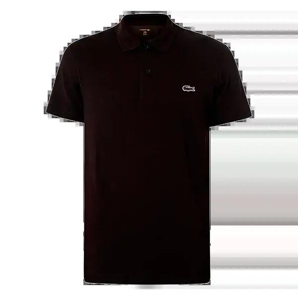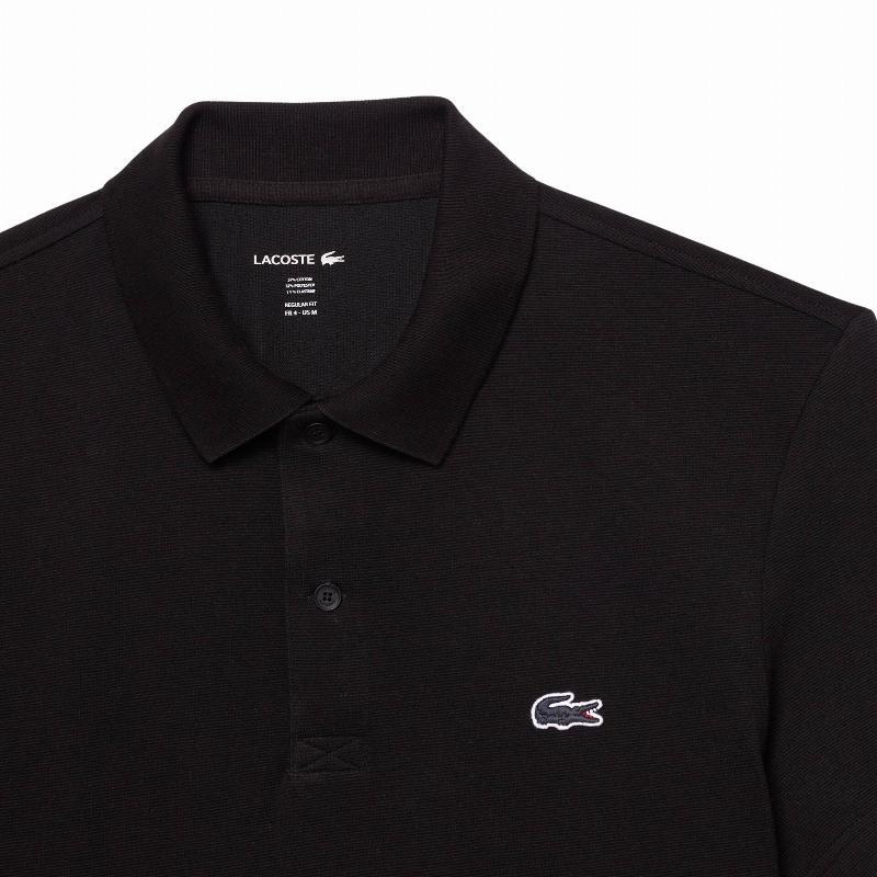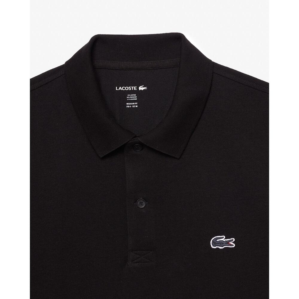 Lacoste men's short sleeve polo shirt with a cotton blend knit. Features a ribbed texture, classic collar, embroidered crocodile, and a straight fit for versatile style and comfort