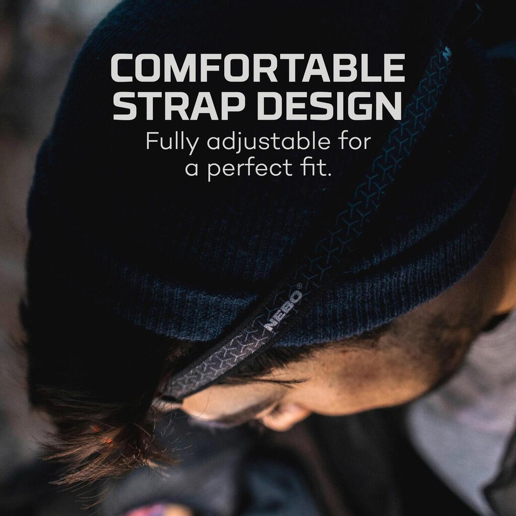 The Einstein 1000 Flex by NEBO is a low-profile, compact 1,000 lumen headlamp with 5 light modes featuring flex power. Use the included rechargeable battery or 2 x CR123A batteries.