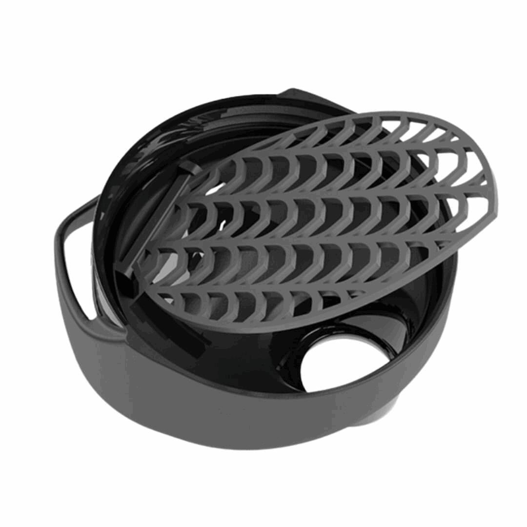 Revolutionary Sidekick strainer system combined with superpowers such as odor- and stain-resistant plastic, a rounded base, and an unmatched heroic design.