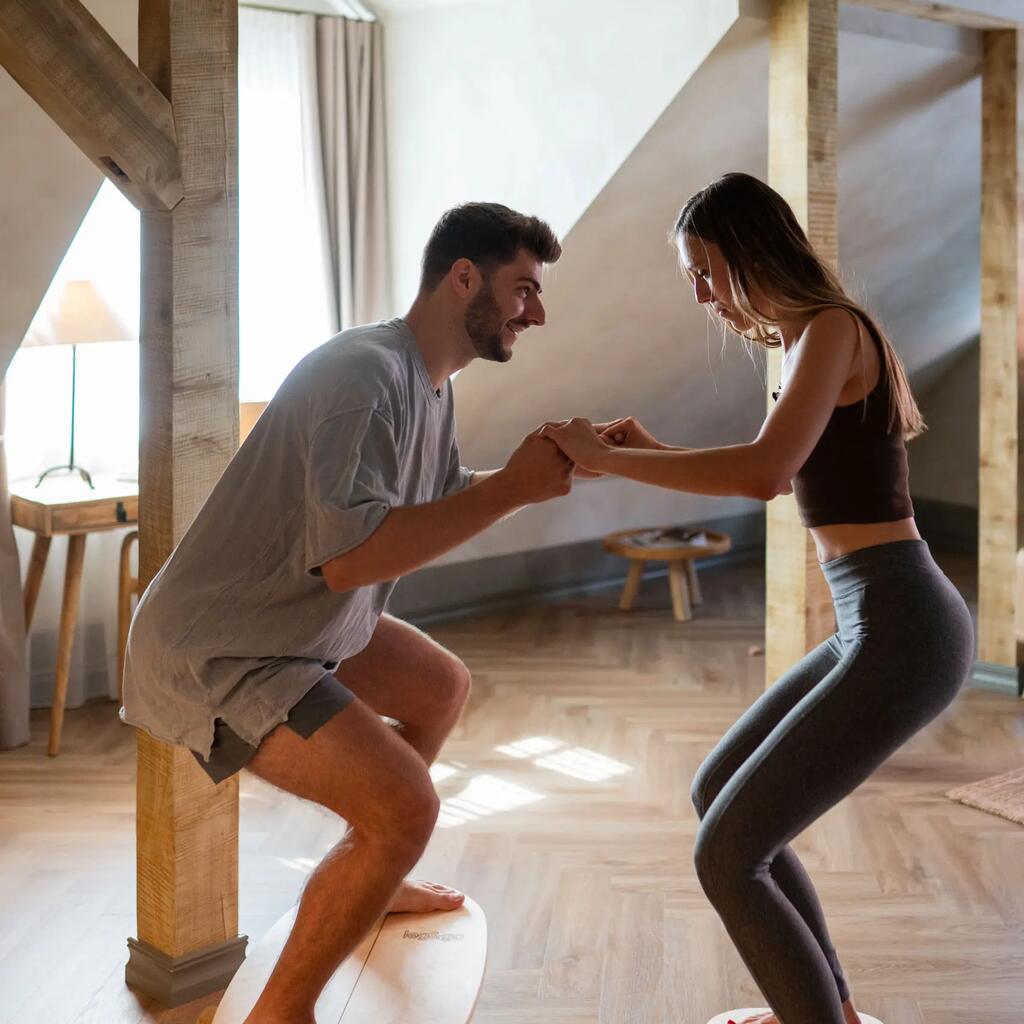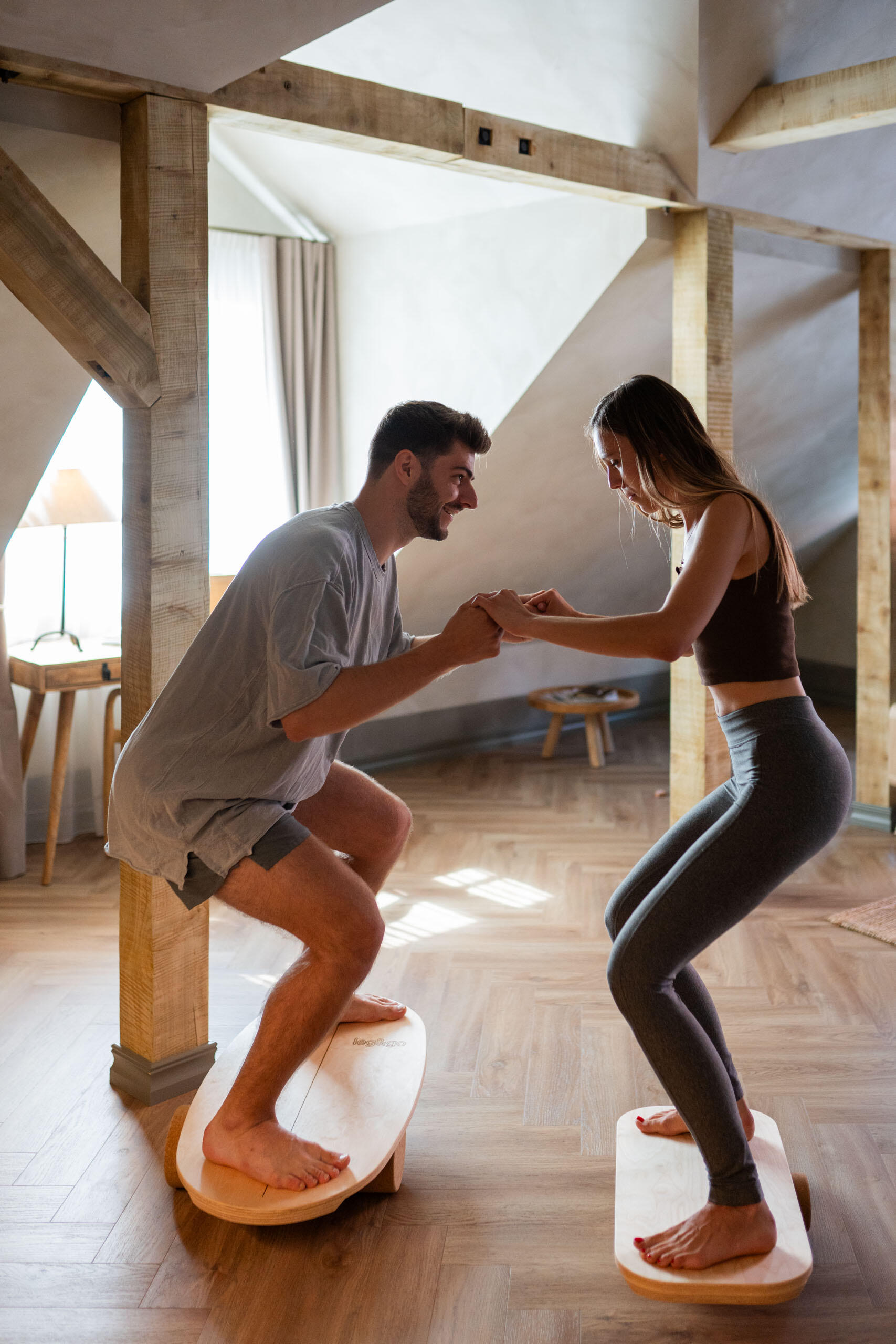 The balance board with roller transforms exercise into a fun activity for everyone, making workouts playful.