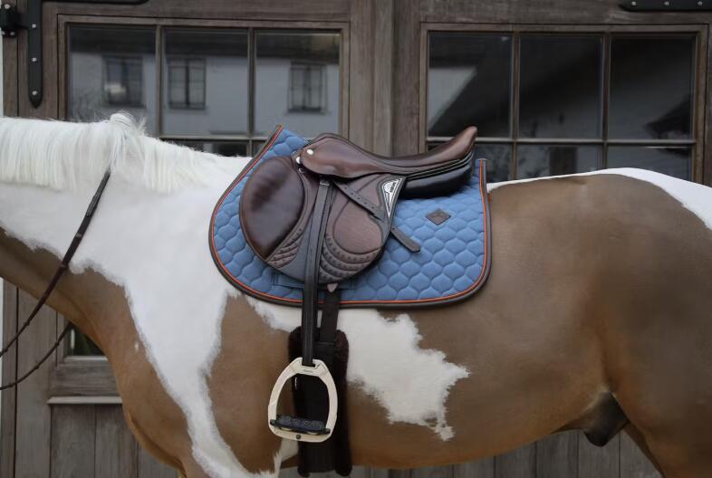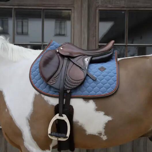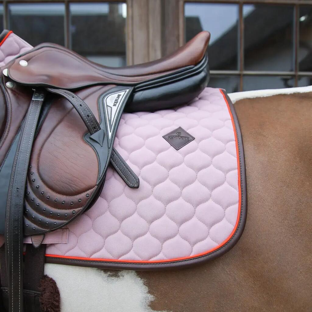 The Onion Quilt Saddle Pad Leather Neon stands out with its elegant onion quilting and a bold and eye-catching neon cord piping. Perfect for both competitions and daily training. ,Elegant onion