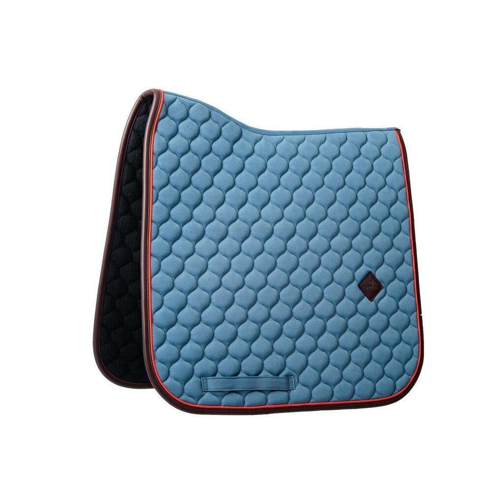 The Onion Quilt Saddle Pad Leather Neon stands out with its elegant onion quilting and a bold and eye-catching neon cord piping. Perfect for both competitions and daily training. ,Elegant onion