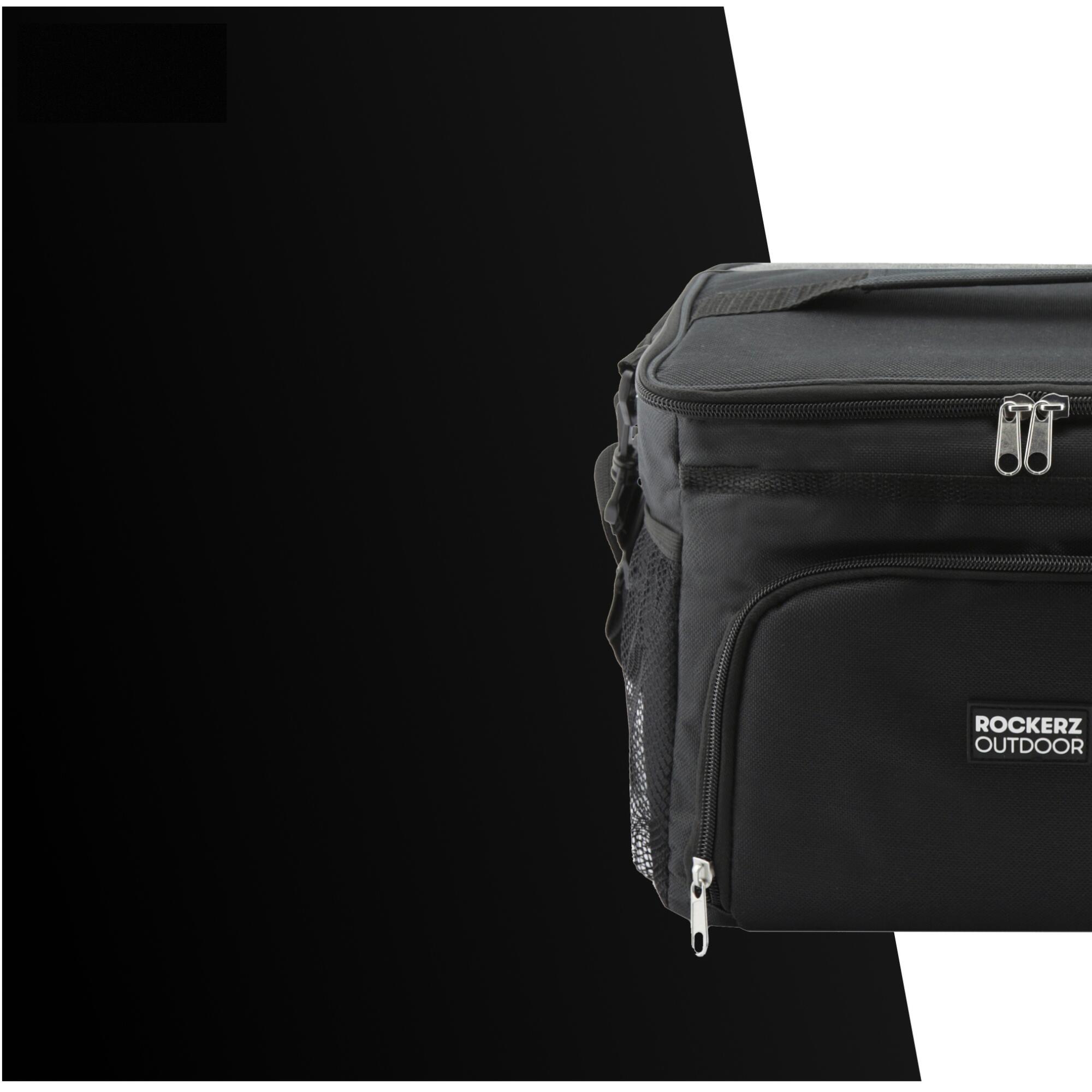 The inside of the cool bag is made from excellent 4-layer insulation material. Insulated PEVA lining with extra-thick EPE foam padding, offering high water resistance. This keeps the air inside the cool bag insulated from the outside temperature. The exterior is made from waterproof and dirt-resistant 900D Oxford weave. The material is woven using the Panama weave technique, which makes Oxford a lightweight yet very strong fabric. It is a wear-resistant and durable material. 100% leak-proof and easy to clean.The benefits of the versatile Rockerz Outdoor cool bag
