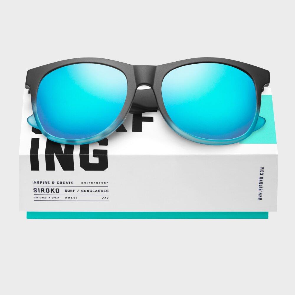 Unisex Siroko Deep Blue sunglasses with a polycarbonate frame and polarised UV400 lenses, designed for surfing and water activities.