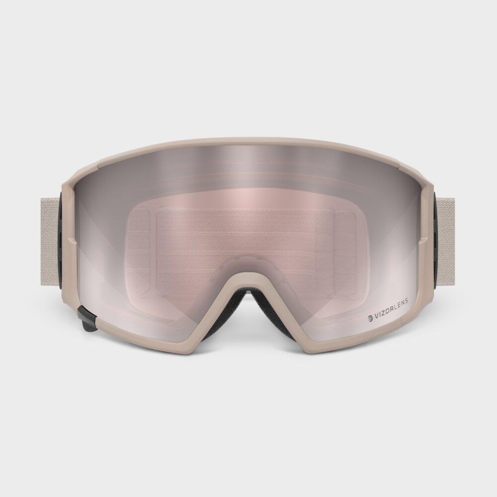 G3 Butter beige ski goggles: lightweight TPU frame, spherical polycarbonate anti-fog and anti-scratch lens with UV400 protection, triple-density foam and non-slip adjustable OTG-compatible strap