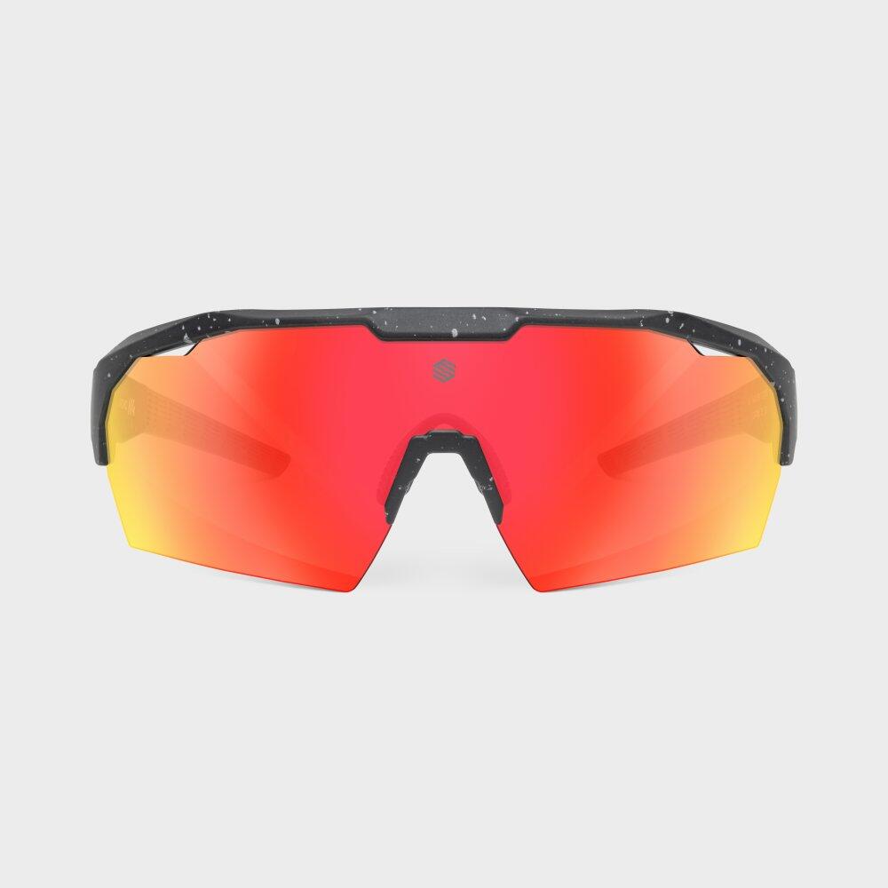 Eyewear for MTB and road cycling. Light and resistant TR90 frame. Panoramic, polarized and interchangeable polycarbonate lenses. Full UV400 protection.