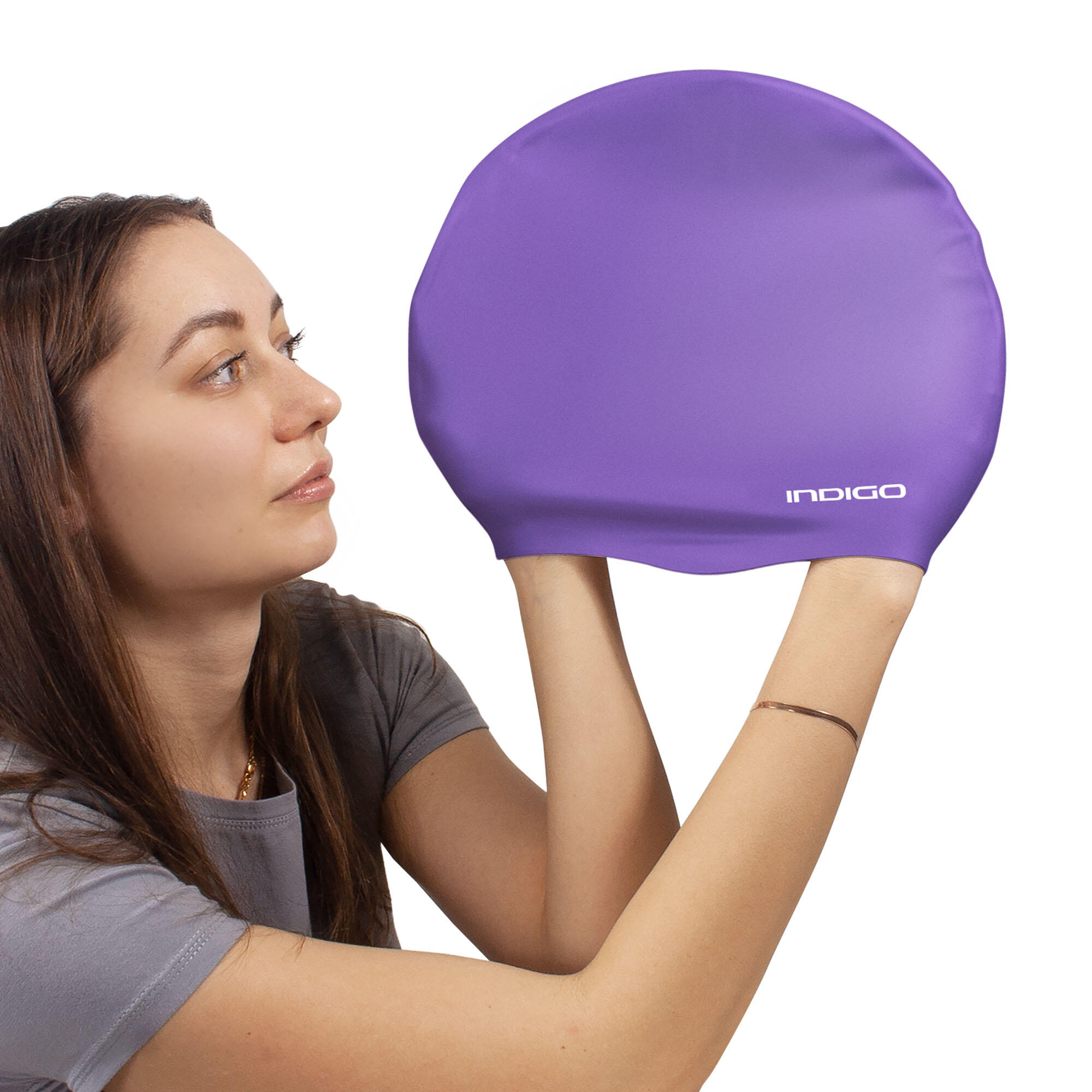 INDIGO Silicone Swim Cap: Extra Large Design for Long, Curly, or Thick Hair – Snug Fit, No Pulls, Ultimate Comfort & Performance