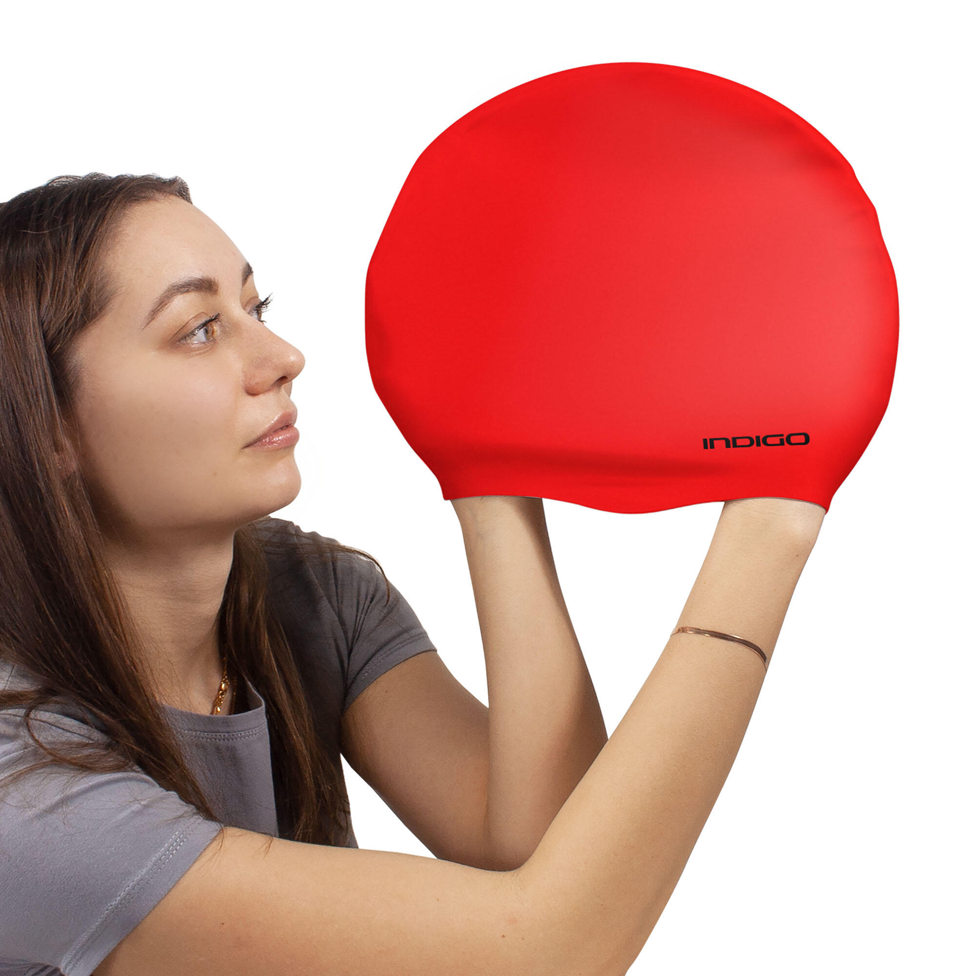 INDIGO Silicone Swim Cap: Extra Large Design for Long, Curly, or Thick Hair – Snug Fit, No Pulls, Ultimate Comfort & Performance