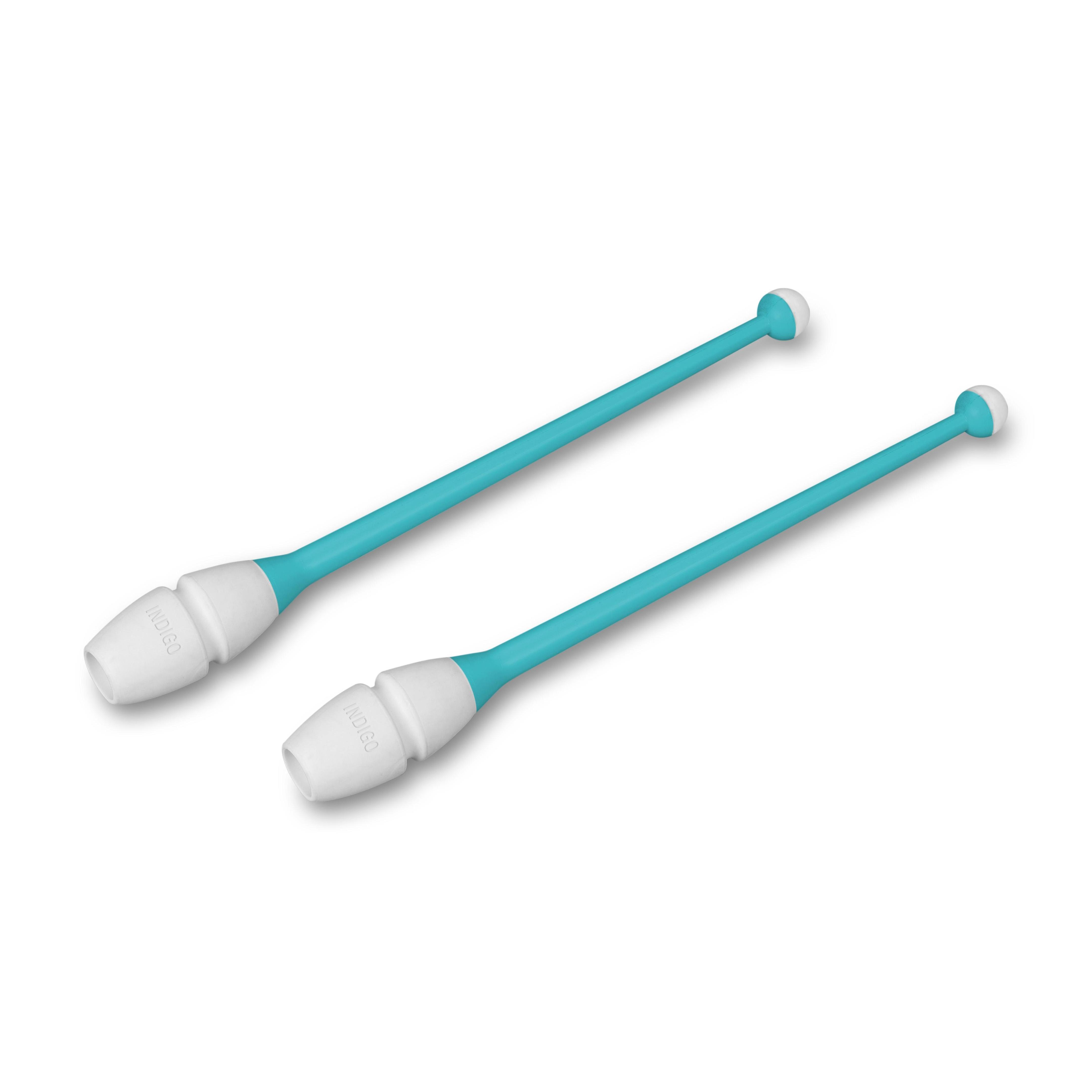 INDIGO two-component connectable rhythmic gymnastics clubs for all skill levels, offering excellent grip and durability.