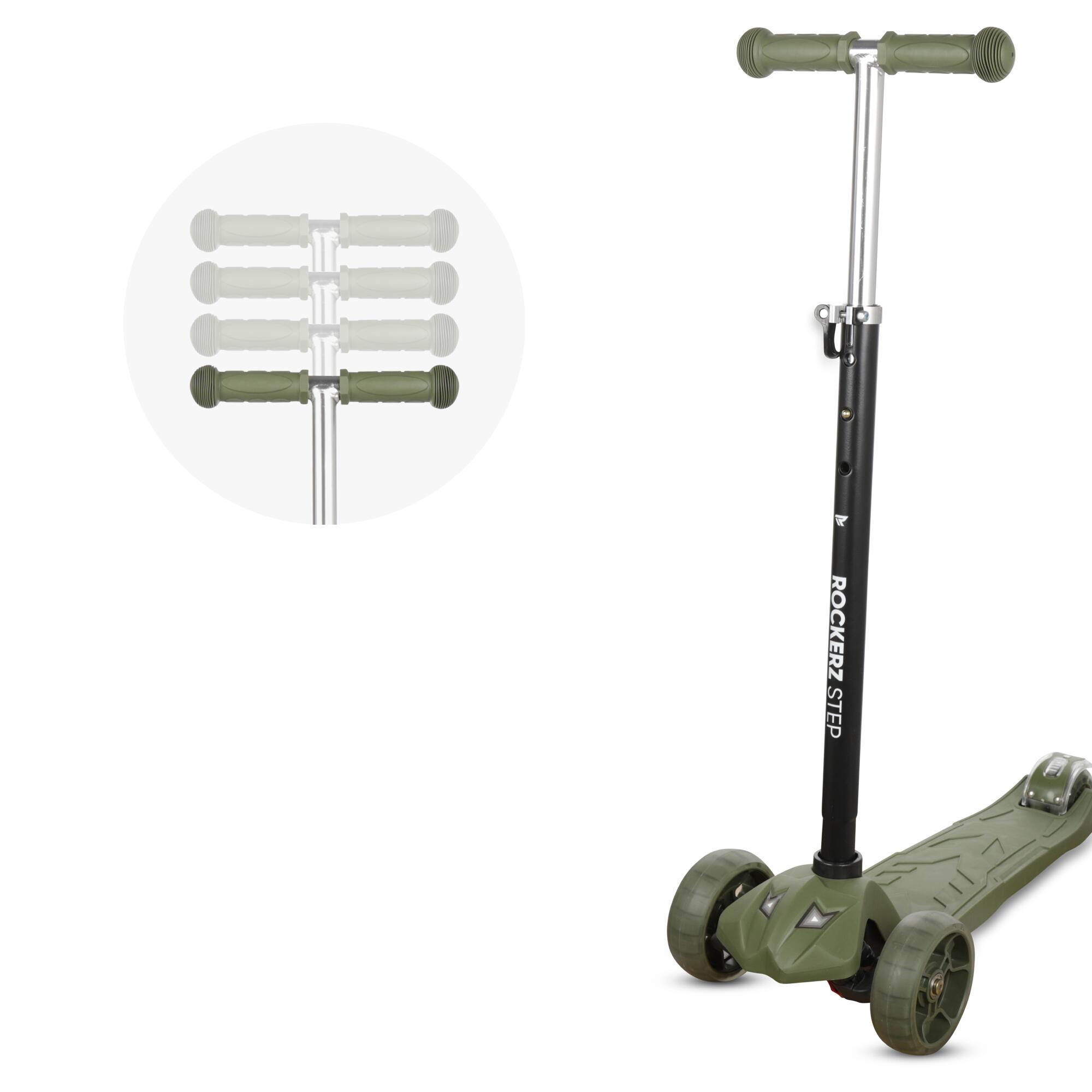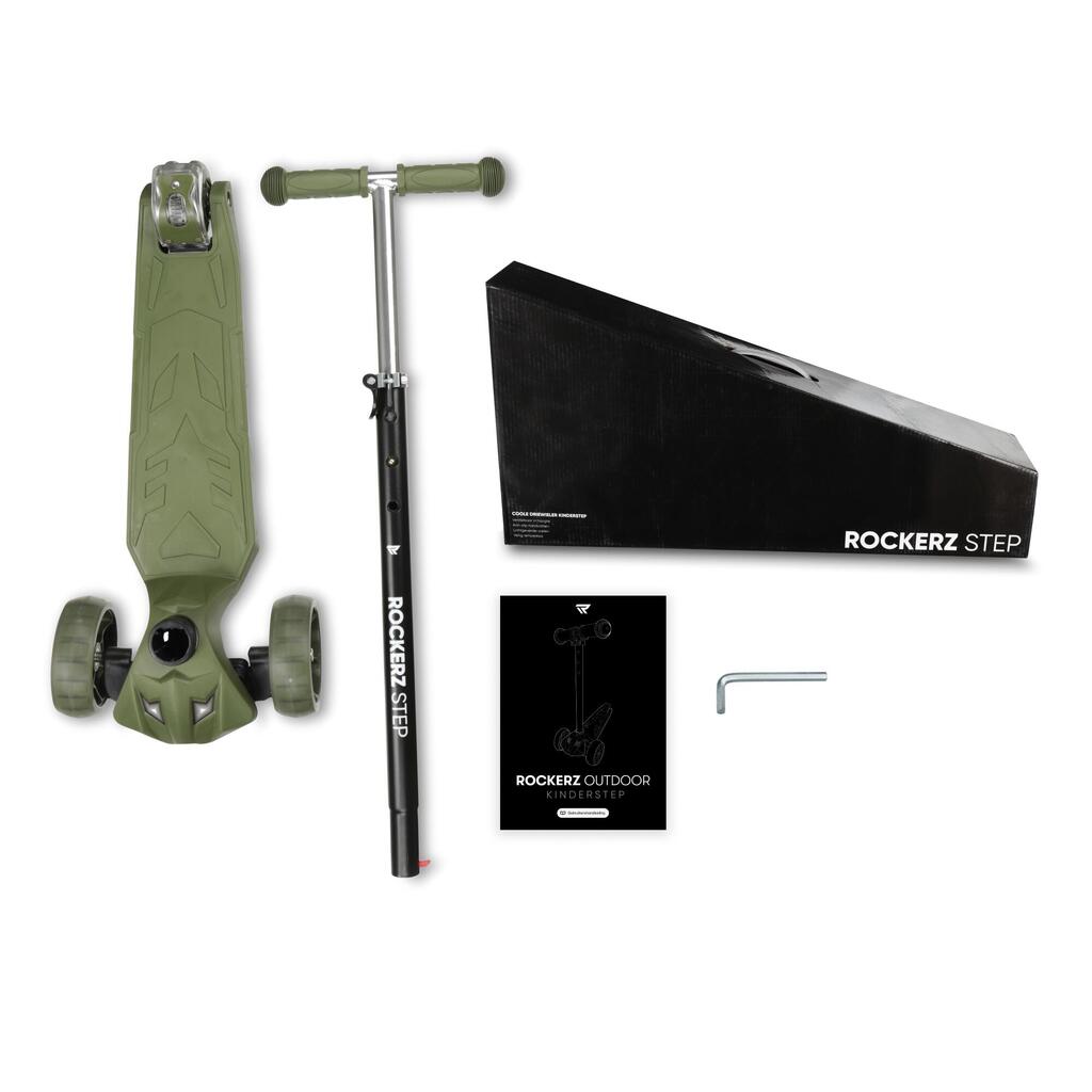 Scooting has just got even more fun! And educational too. With the Rockerz Outdoor scooter, children learn to develop balance and coordination with a smile on their face. And to make it extra fun, the wheels light up too! This means your children can entertain themselves for hours and will happily come along on outings without any complaints. Fun for everyone! Develops balance and coordination The scooter uses intuitive gravity steering, with a steering movement of 75 degrees. Children can use their body weight to turn left and right. Through this steering movement, your children learn to maintain their balance and steer by using gravity to their advantage. This develops their balance and coordination. The scooter is also not easy to tip over. When children see the LED wheels, their eyes will light up! Hours of fun guaranteed. Order the Rockerz scooter now! Safety above all The unique four-wheel design gives the scooter stability and safety. The 12 cm front wheels are larger for extra stability, and the double rear wheels are an extra sturdy 8 cm. The scooter also features a reinforced rear wheel brake that is easy to operate and ensures fast and stable braking. The frame is made from a very strong aluminium alloy, the footboard is made from sturdy nylon and the handlebars from very strong steel. The scooter also has a wide anti-slip platform to stand and scoot on safely and stably. The rubber-coated handlebar is soft and anti-slip, perfectly protecting your child's hands while scooting. With the Rockerz scooter you can safely send your children out into the world. Safety and fun guaranteed! Adjustable height The scooter can easily be set to four different heights: open the locking piece, set the correct height and then close the locking piece. The heights are: 61, 75, 80 and 84 centimetres. The scooter can therefore grow with your children! Or do you want your children to learn to share? They can easily adjust the height to their own size. Because the height of the scooter is also important to get the most out of it. Thanks to the lightweight material, the scooter weighs just 3 kilos. Light-up wheels To enhance the fun, the wheels light up in various colours. The Rockerz scooter has durable PU wheels with LED lighting. When rolling, the wheels light up, which is also visible during the day. When children see the LED wheels, their eyes will light up! And this works with a dynamo, so no batteries needed! The scooter is available in multiple colours so you or your children can choose. Recommendations and warnings Not suitable for children under 3 years. Maximum weight up to 60 kilos. Wear protective gear when using. The benefits of the Rockerz scooter Helps children learn balance and coordination With light-up wheels Easily adjustable in height Made from sturdy and durable materials Easy to take along Playing in a safe way Easy to assemble CE certified Available in various colours Package contents ➜ 1x Scooter ➜ 1x Handlebar ➜ 1x Allen key ➜ 1x Manual Specifications ▶ Weight: 2.9 kg ▶ Material: Aluminium ▶ Tyre material: PU ▶ Age: 3–8 years