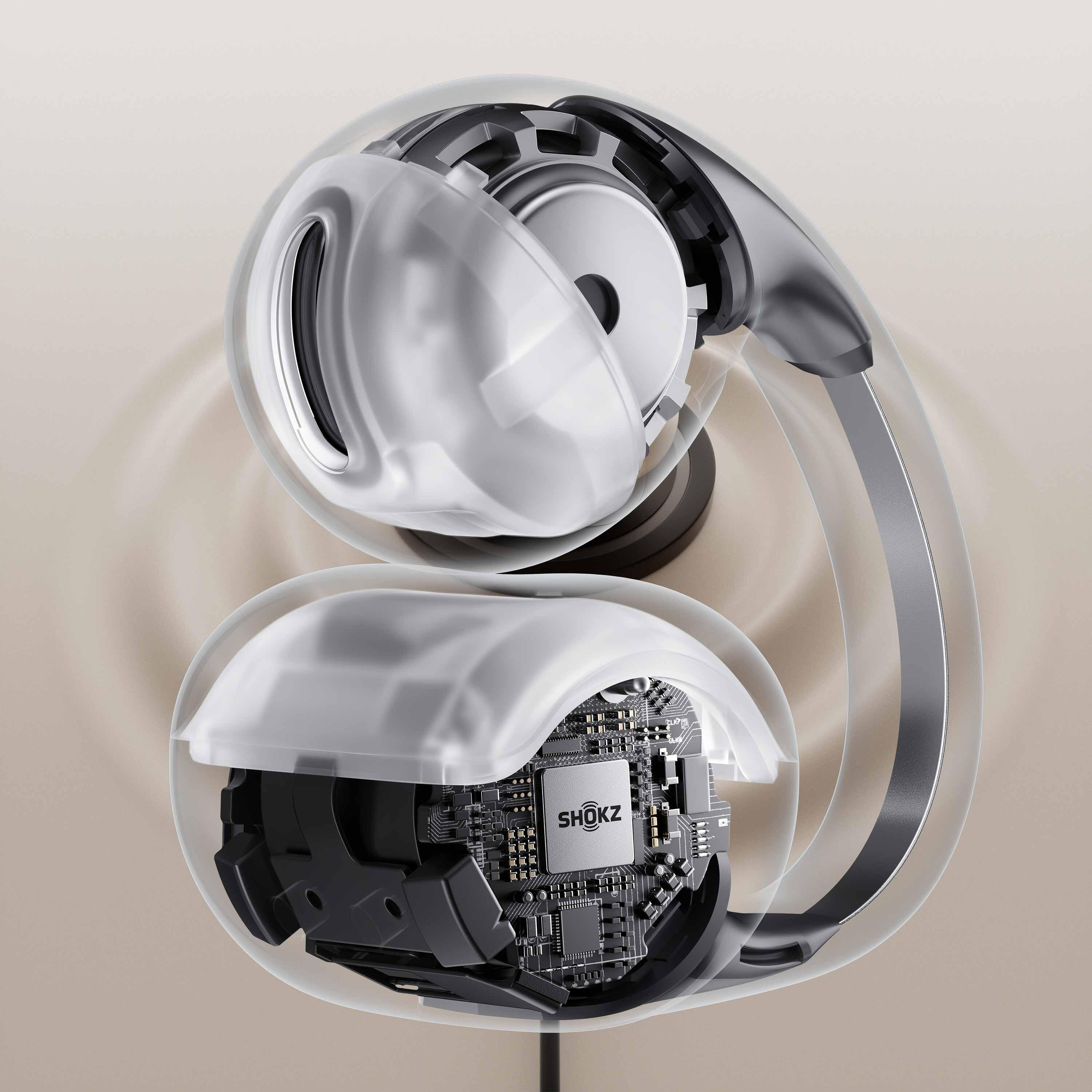 - **Design and Comfort**: With their ultra-thin and flexible titanium alloy headband, thanks to **Shokz JointArc™** technology, the OPENDOTS ONE ensure a **secure and comfortable fit**. Their lightweight design, weighing only 6.5 grams per earphone, makes them perfect for extended use.