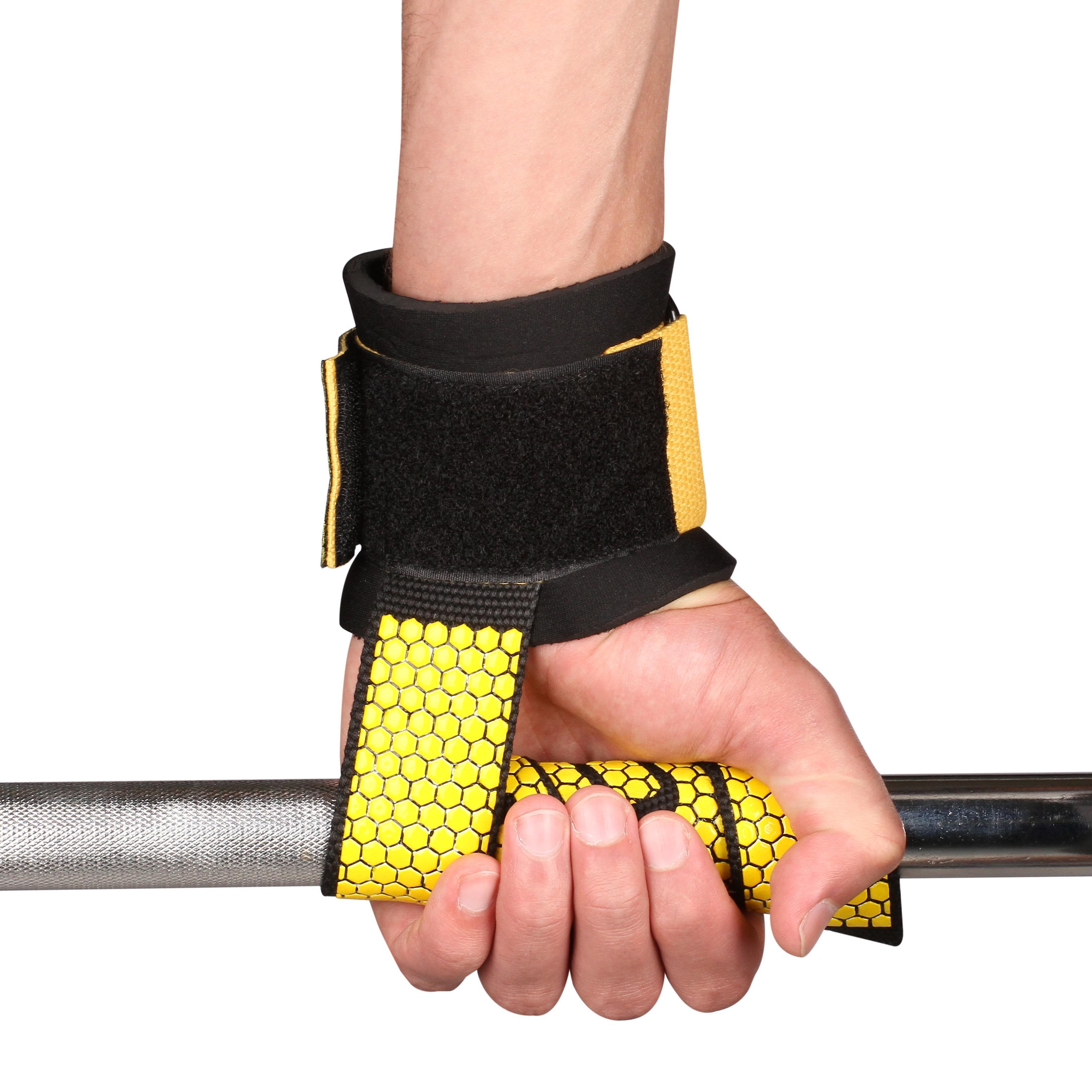 INDIGO Weightlifting Wrist Wraps Deadlift Support Pair Black-Yellow