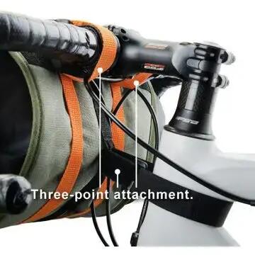 The Packman Travel Pack uses a **three-point mounting** system to ensure maximum stability on the handlebar, reducing oscillations and providing reliable hold even on uneven terrain.