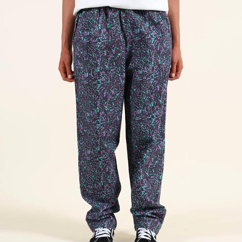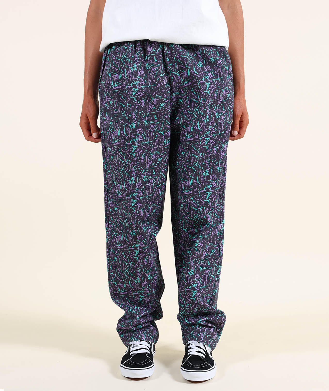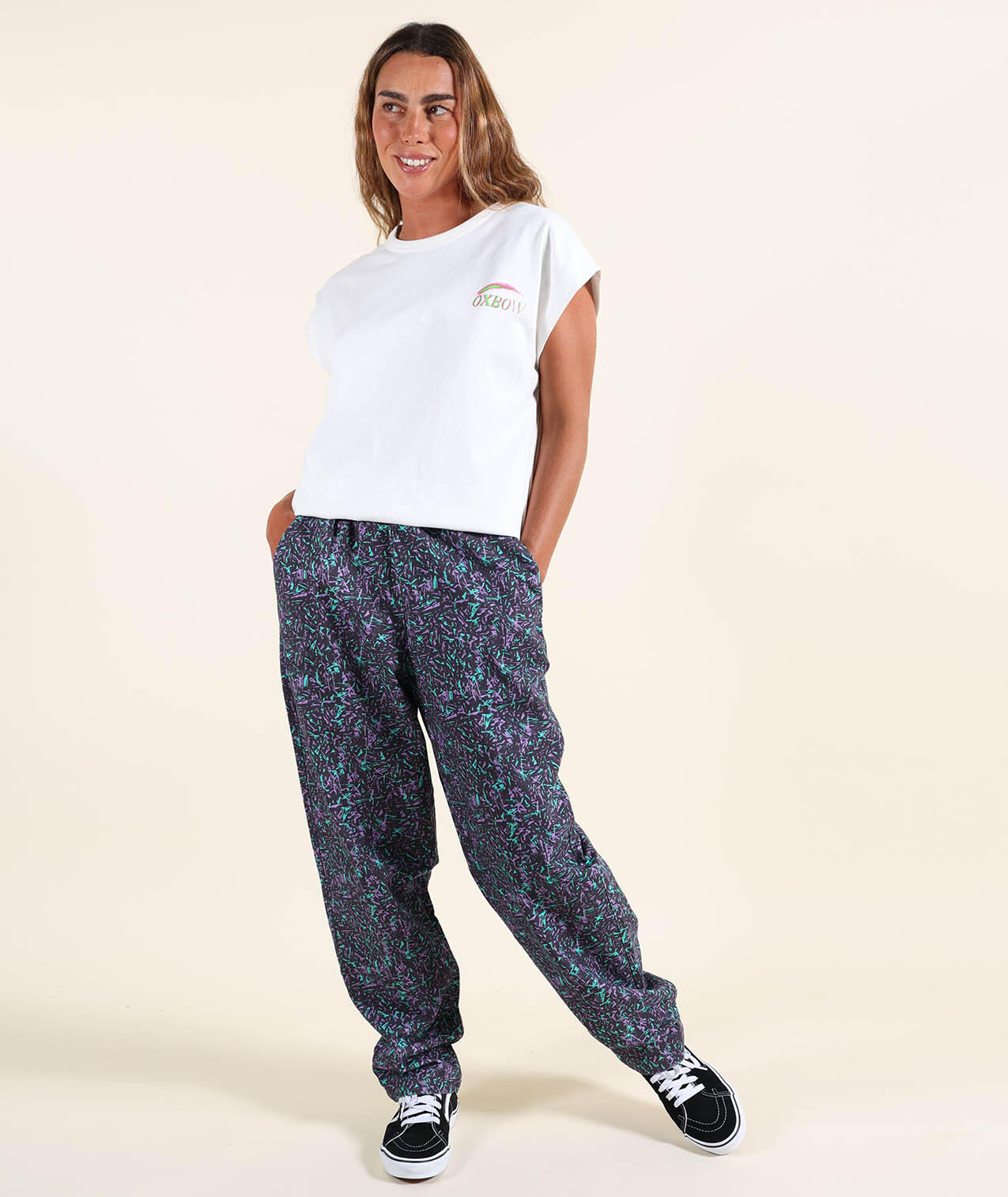 Elastic waist printed cotton twill pants, relaxed fit with vintage wash and Oxbow woven labels.