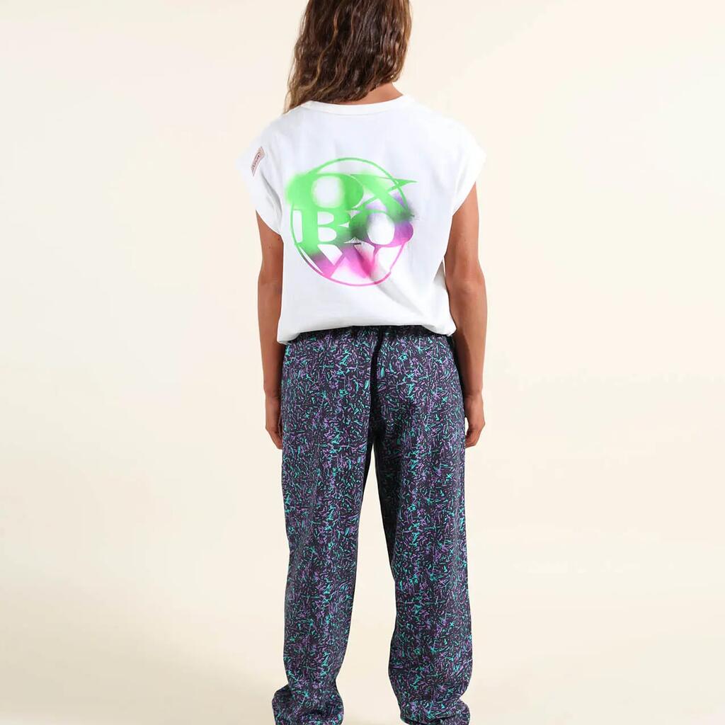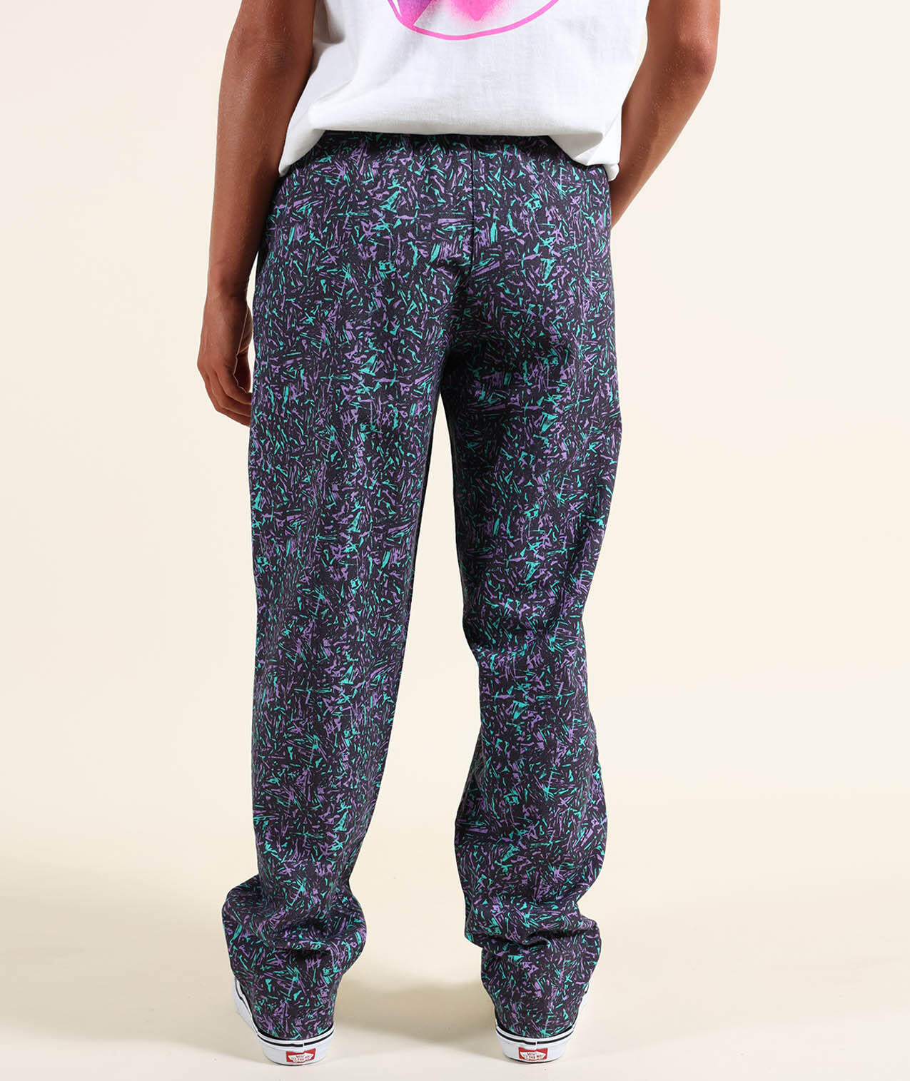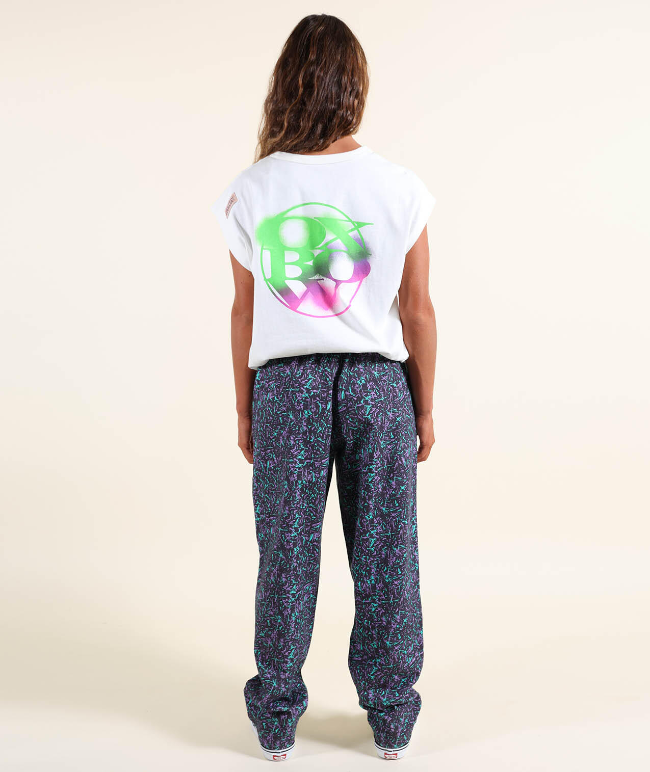 Elastic waist printed cotton twill pants, relaxed fit with vintage wash and Oxbow woven labels.