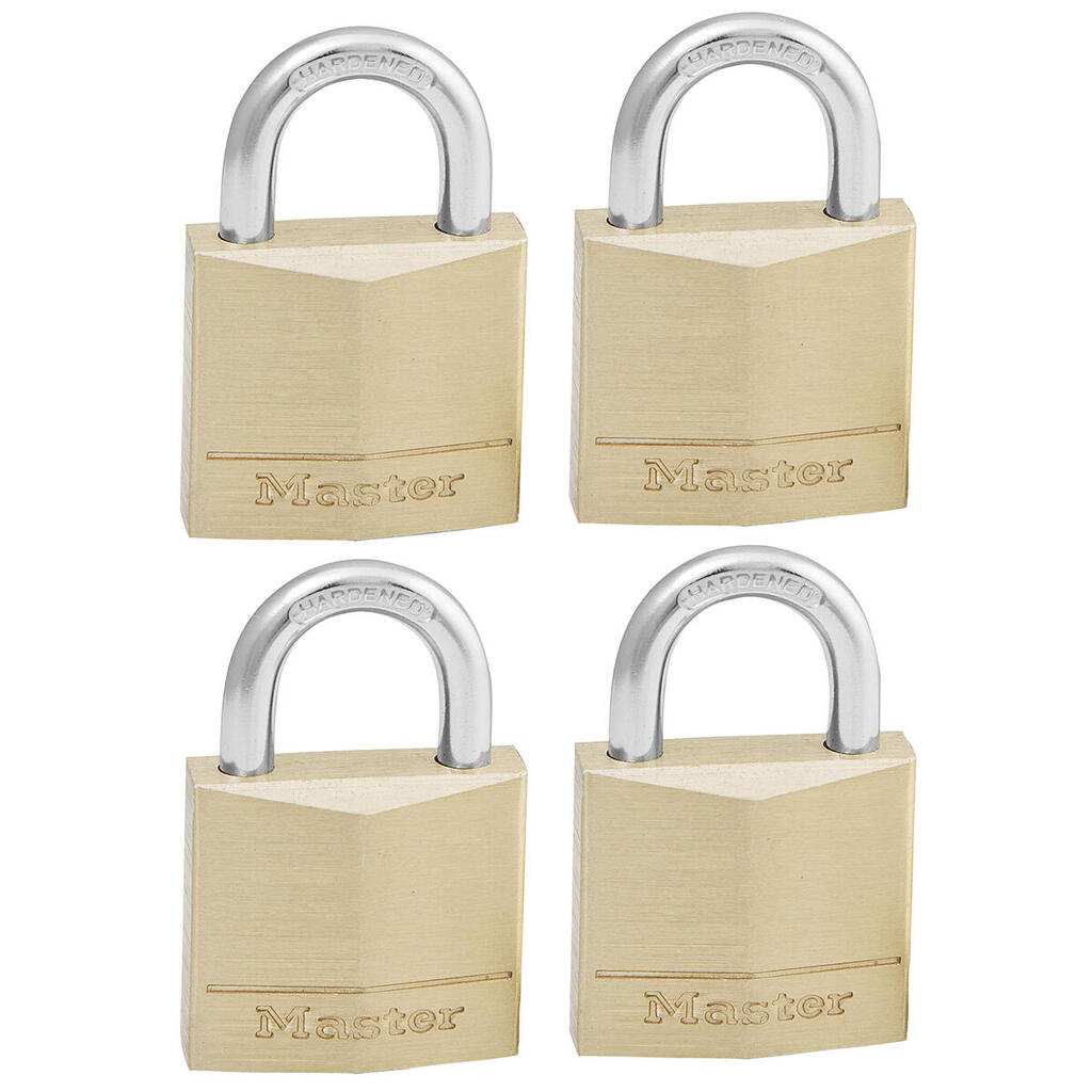 130EURQNOP Pack of 4 Key Padlocks with Brass Body, Gold, 4,9 x 3 x 1,2 cm