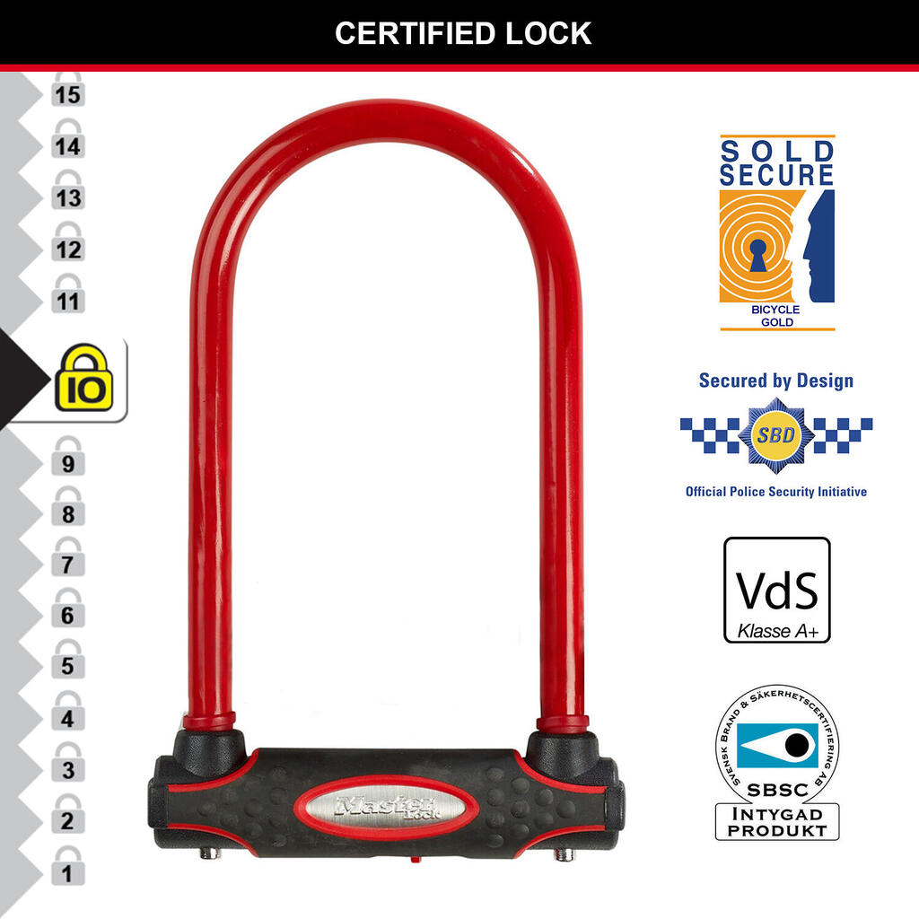 Heavy Duty Bike D Lock [Key] [Universal Mounting Bracket] [Certified Bike Lock] [Police Approved] [Red] 8195EURDPROCOLR - Ideal for Bike, Electric Bike, Mountain Bike, Road Bike, Folding Bike