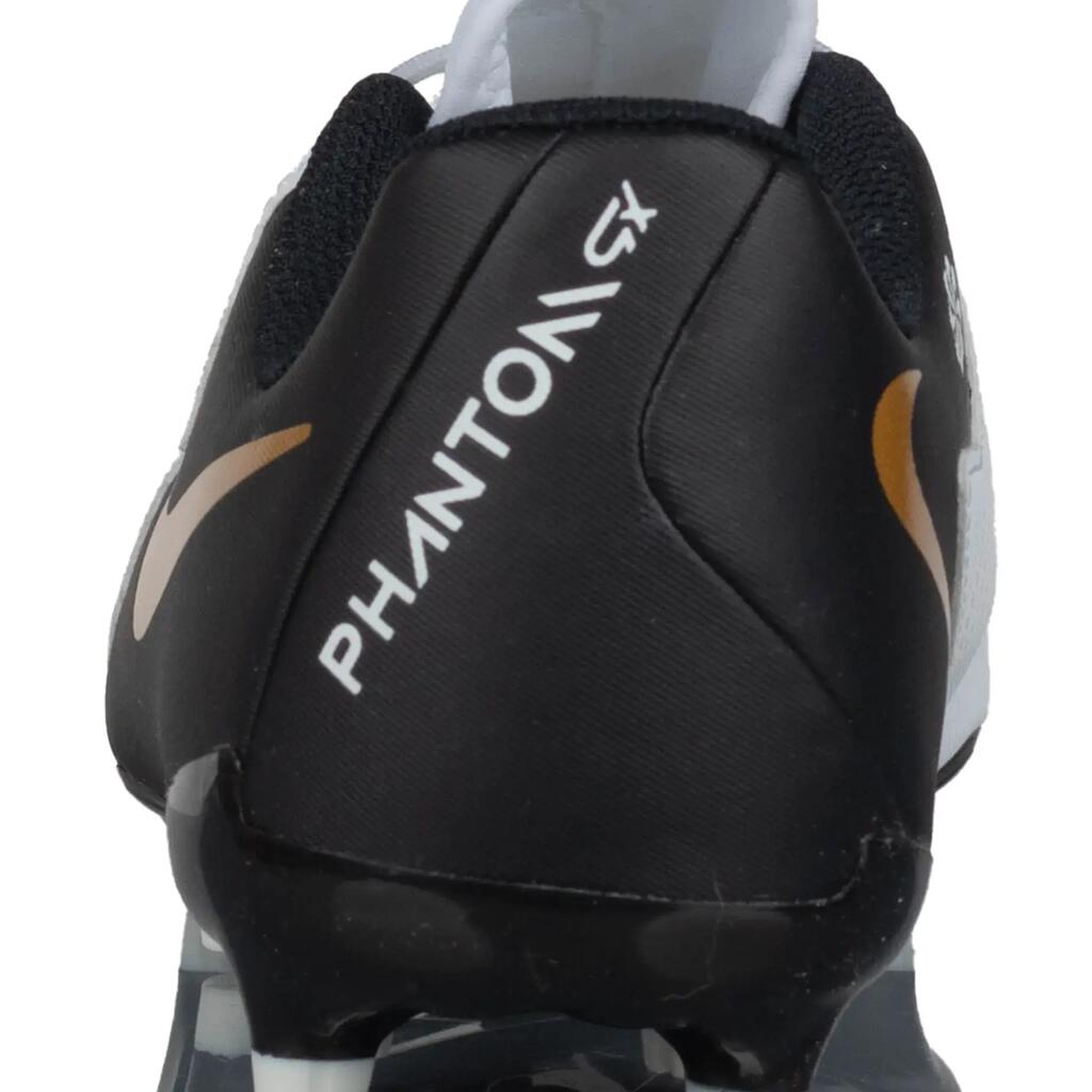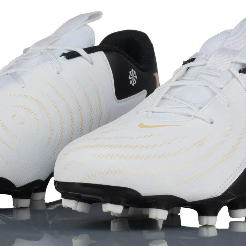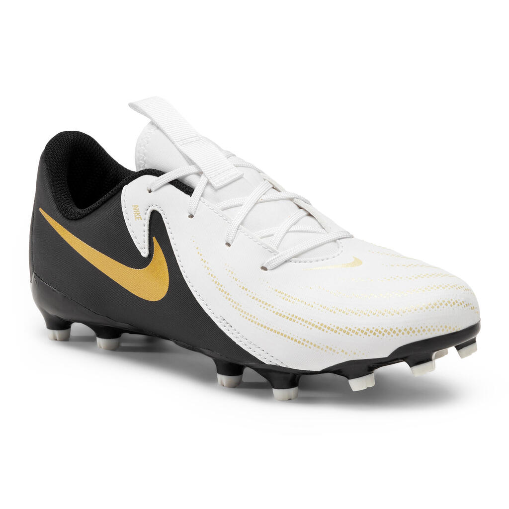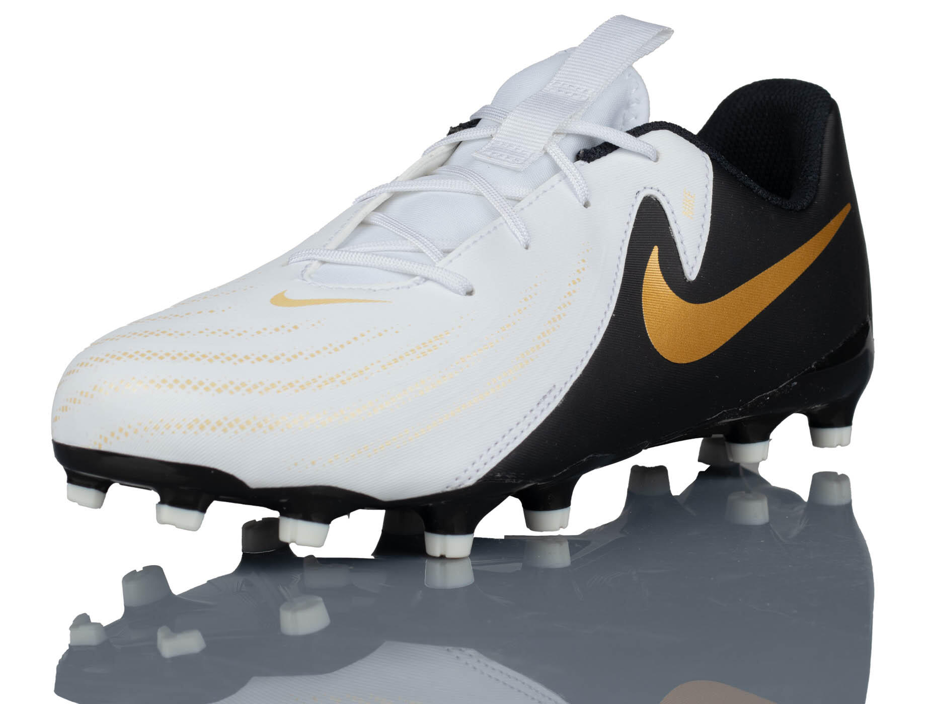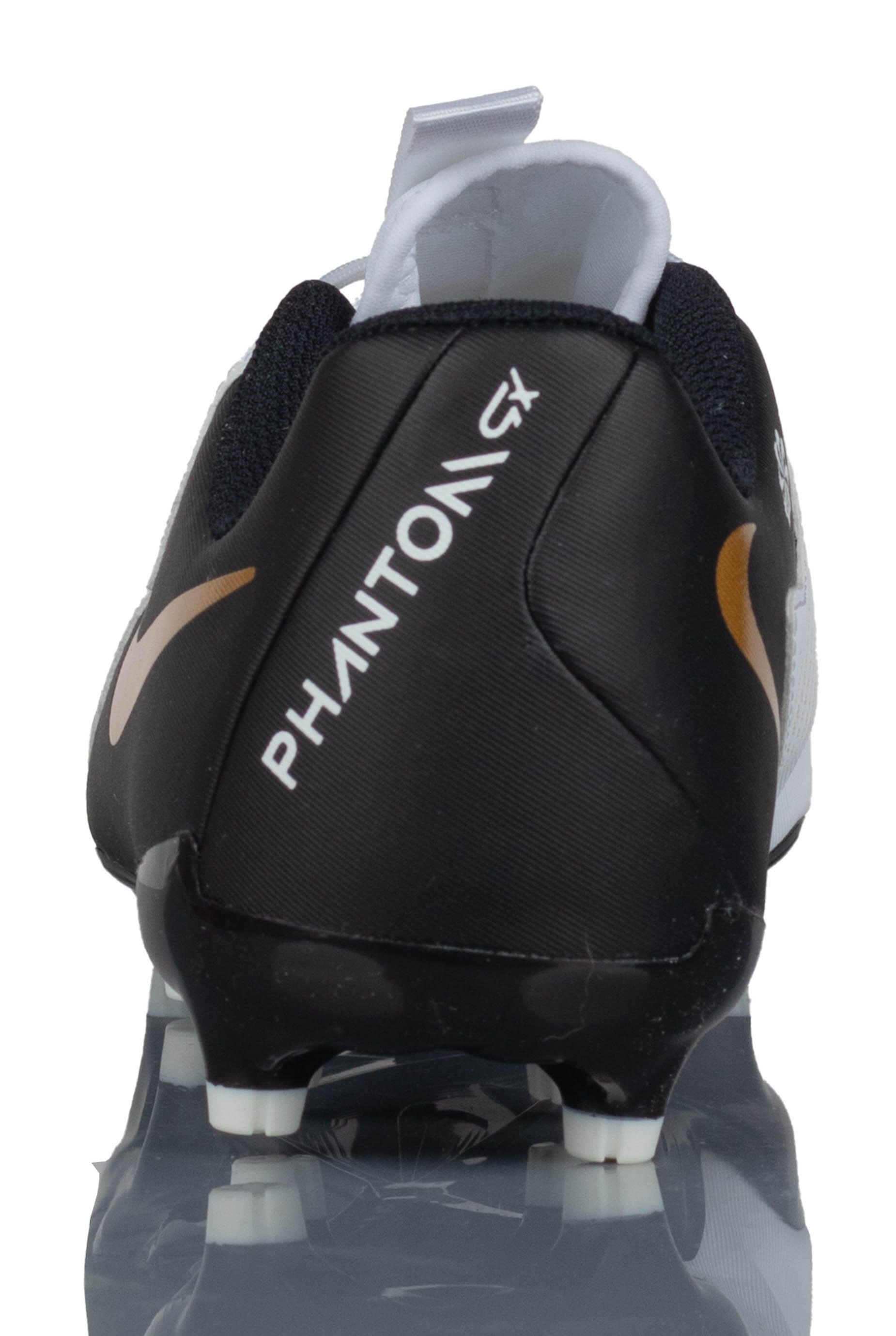 Nike Jr. Phantom GX 2 Academy junior football cleated shoes with synthetic upper, cushioned inner sole, enhanced ball control and comfort for young players.