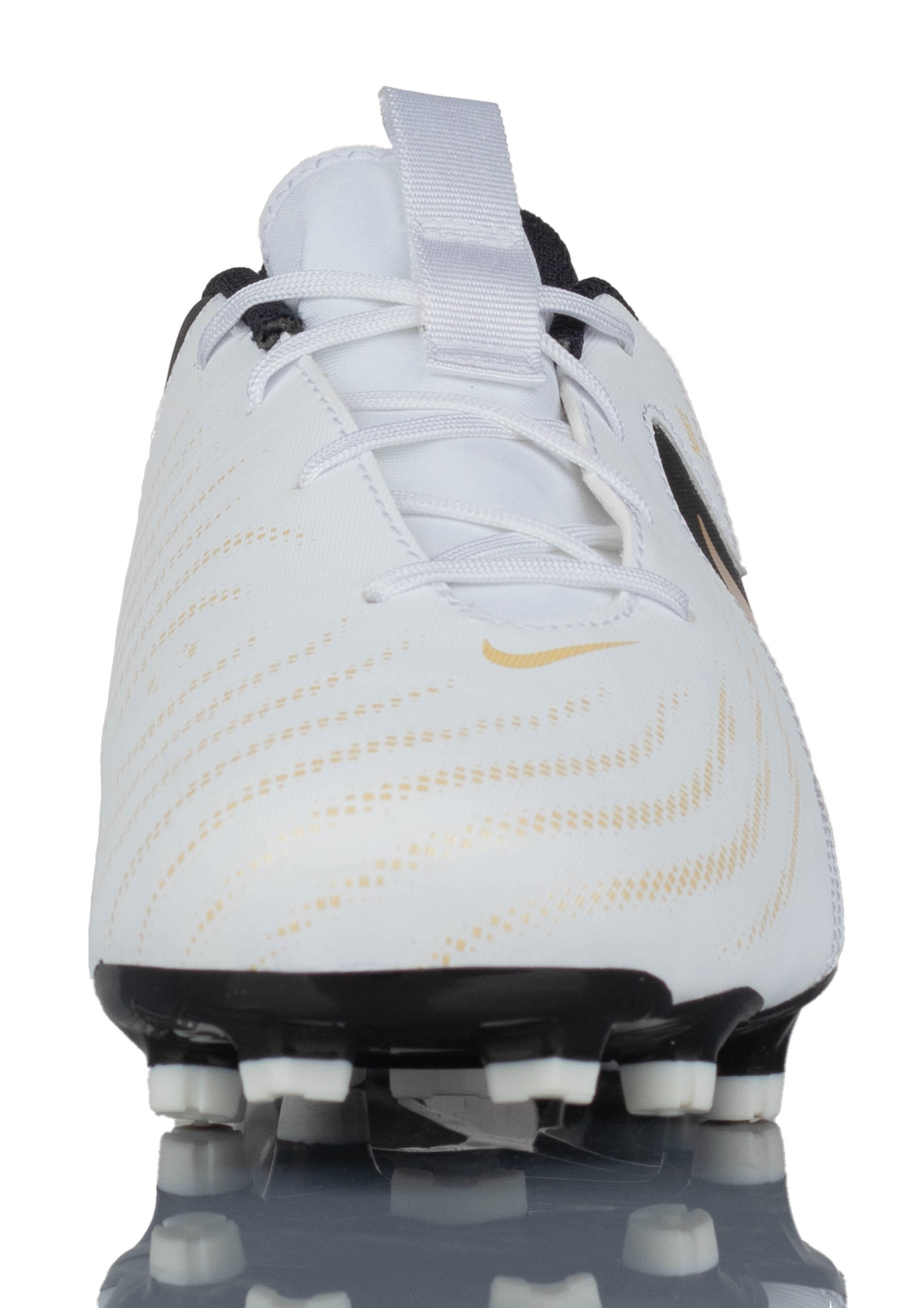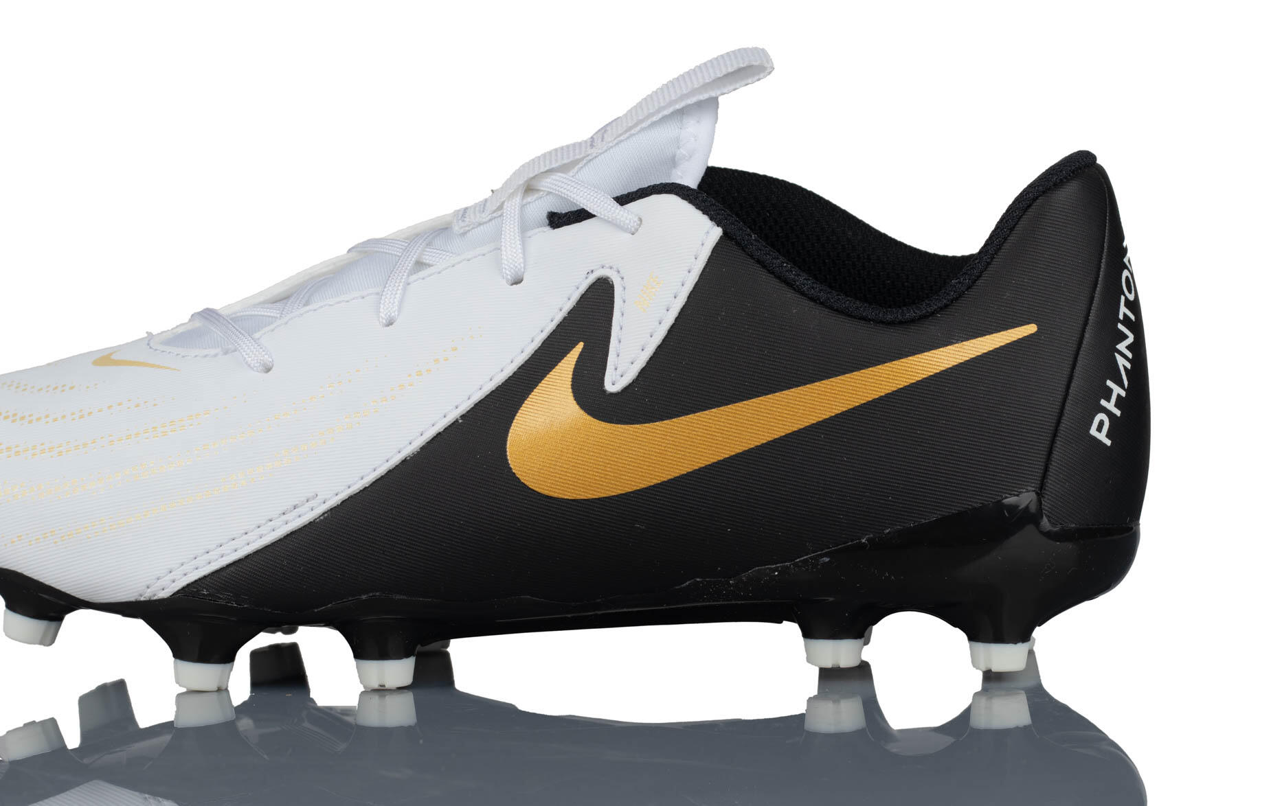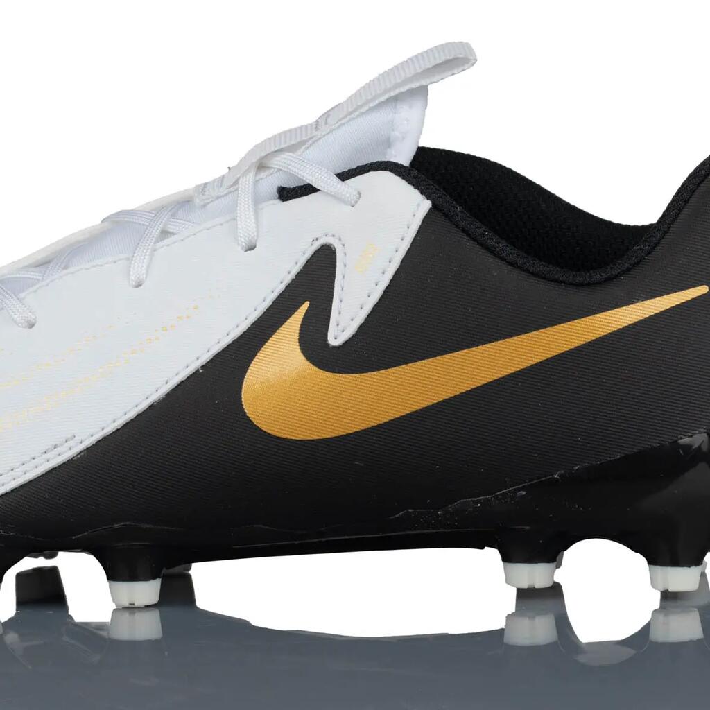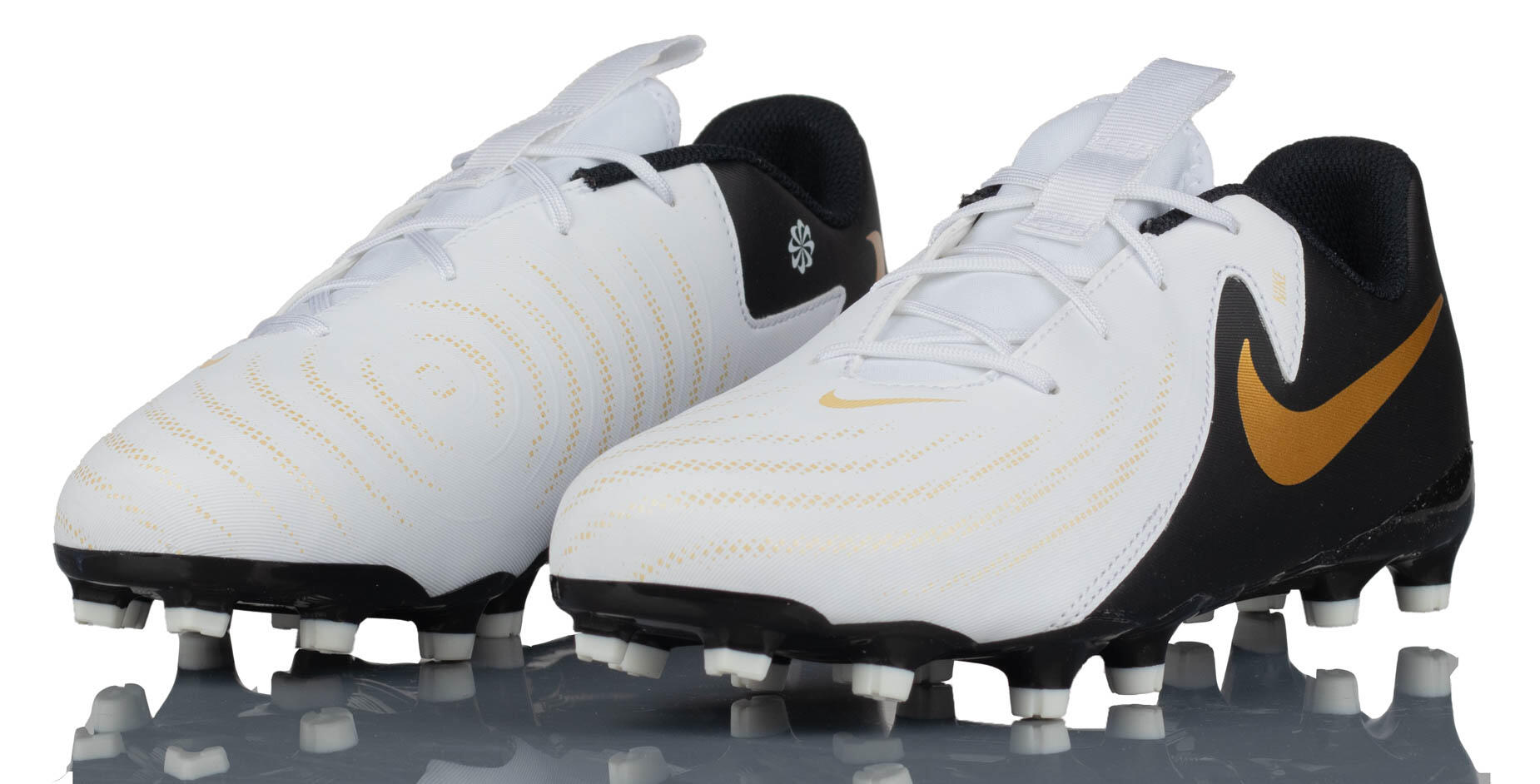 Nike Jr. Phantom GX 2 Academy junior football cleated shoes with synthetic upper, cushioned inner sole, enhanced ball control and comfort for young players.