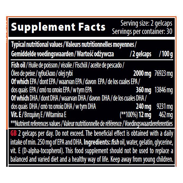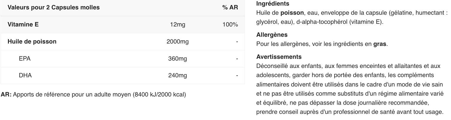 Food supplement rich in essential fatty acids, containing EPA and DHA, which contribute to the normal function of the heart and brain.