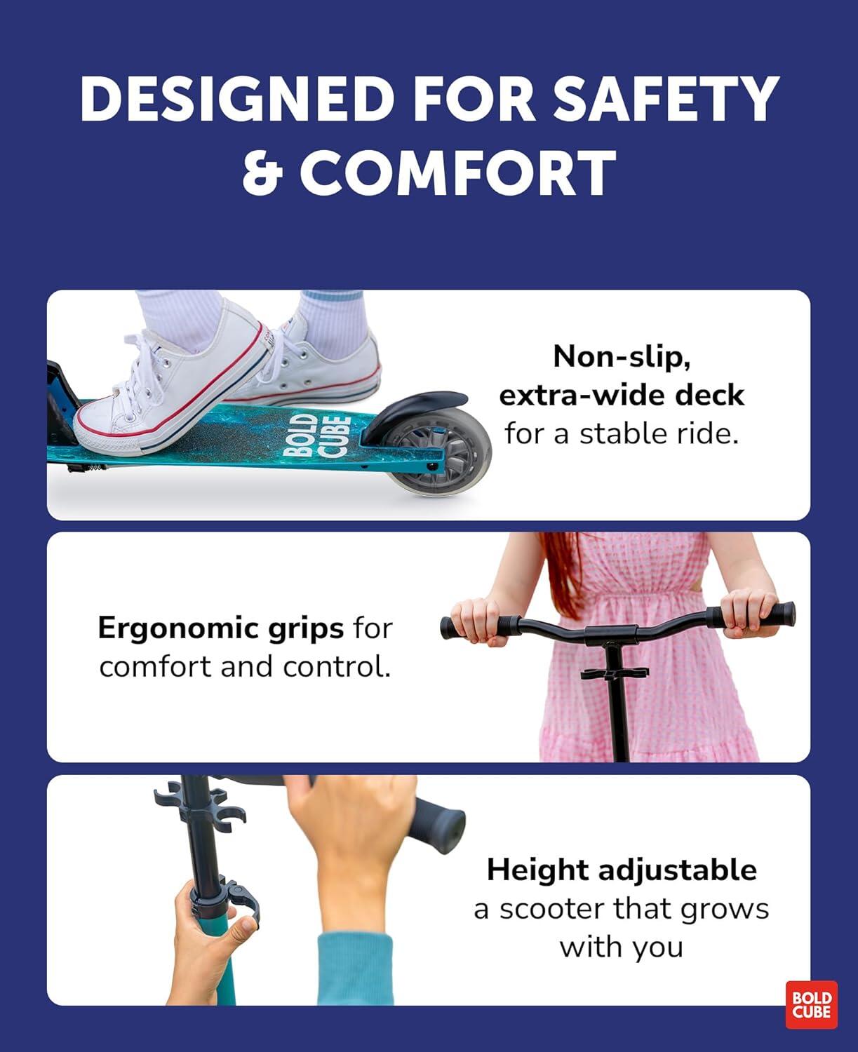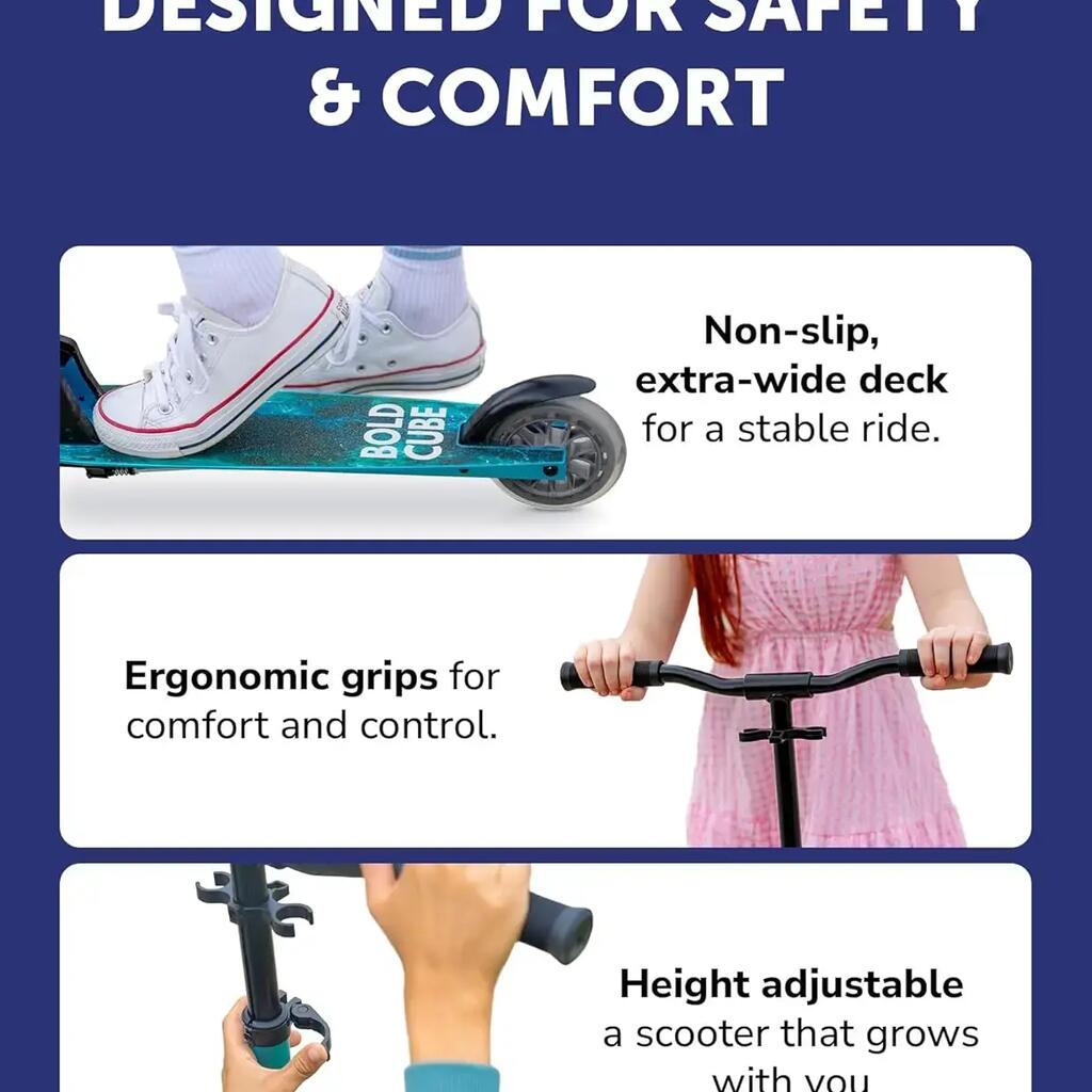 FULLY REPLACEABLE PARTS - Designed to last, but easy to repair! Every BOLDCUBE kick scooter is designed to be 95% repairable by parts, so no scooter needs to go to landfill! This scooter for kids come with a set of Allen keys for scooter MOTs. Our friendly customer service team provide global email & video support whatever your query.