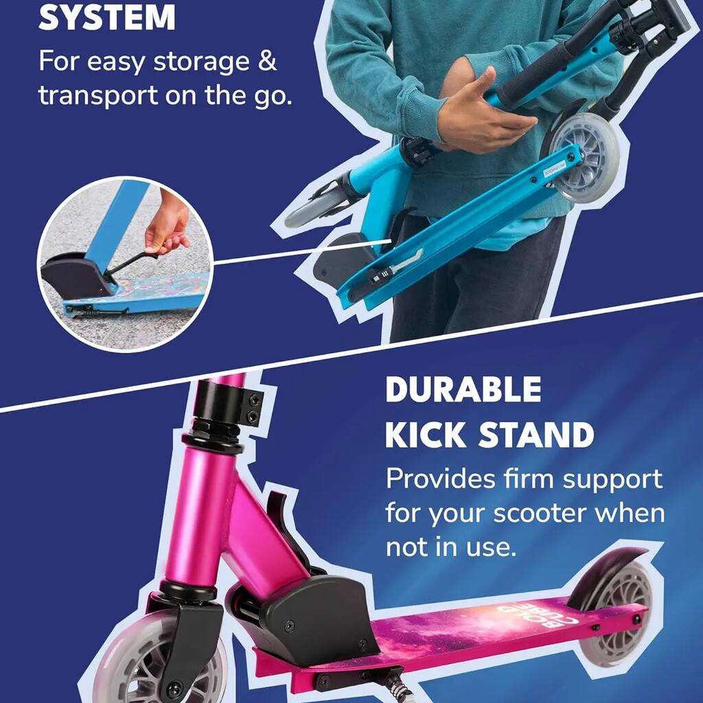 KICKSTAND - Tired of riding, park your two wheel scooter upright wherever you are using the built in kickstand to prevent any scratching or damage from laying around on the ground. Features premium construct which makes this kids and teens scooter a great Christmas and birthdays gift for boys and girls.