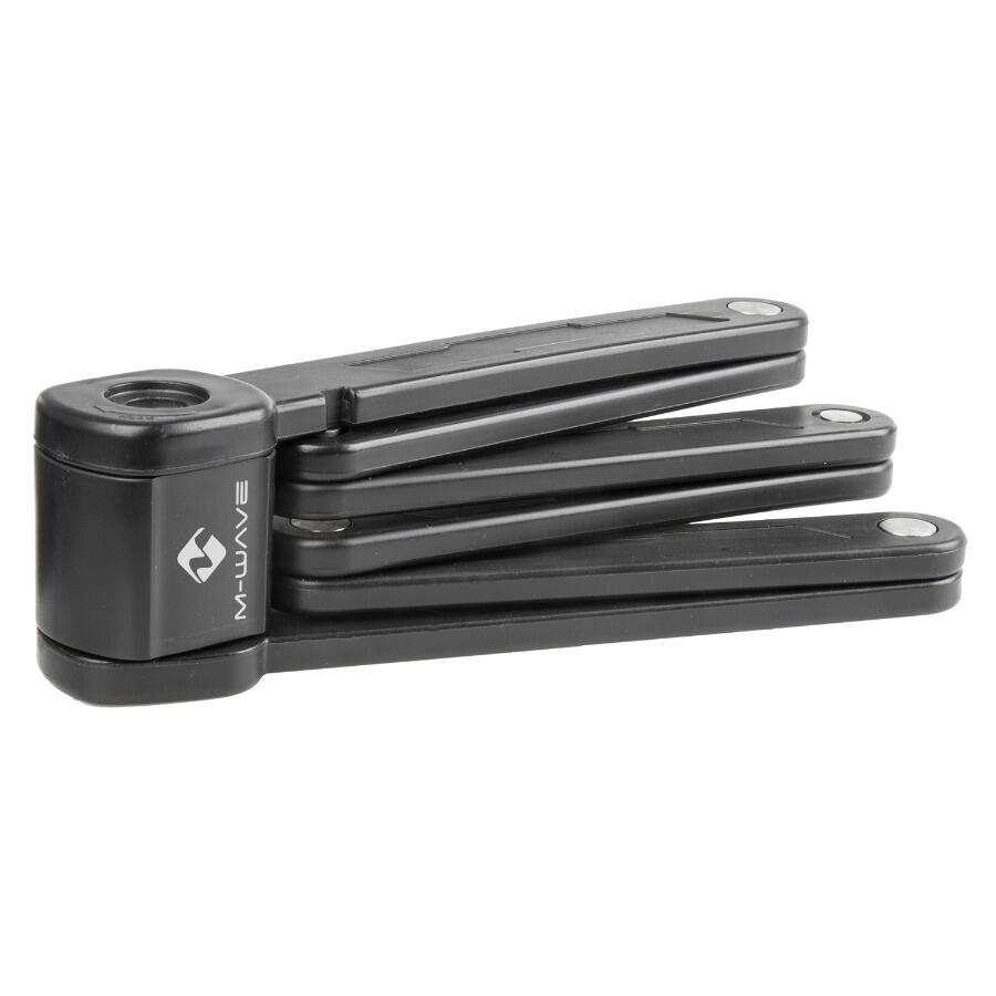 M-Wave compact folding bike lock, 875 x 5 mm, 5 mm hardened steel links, black.