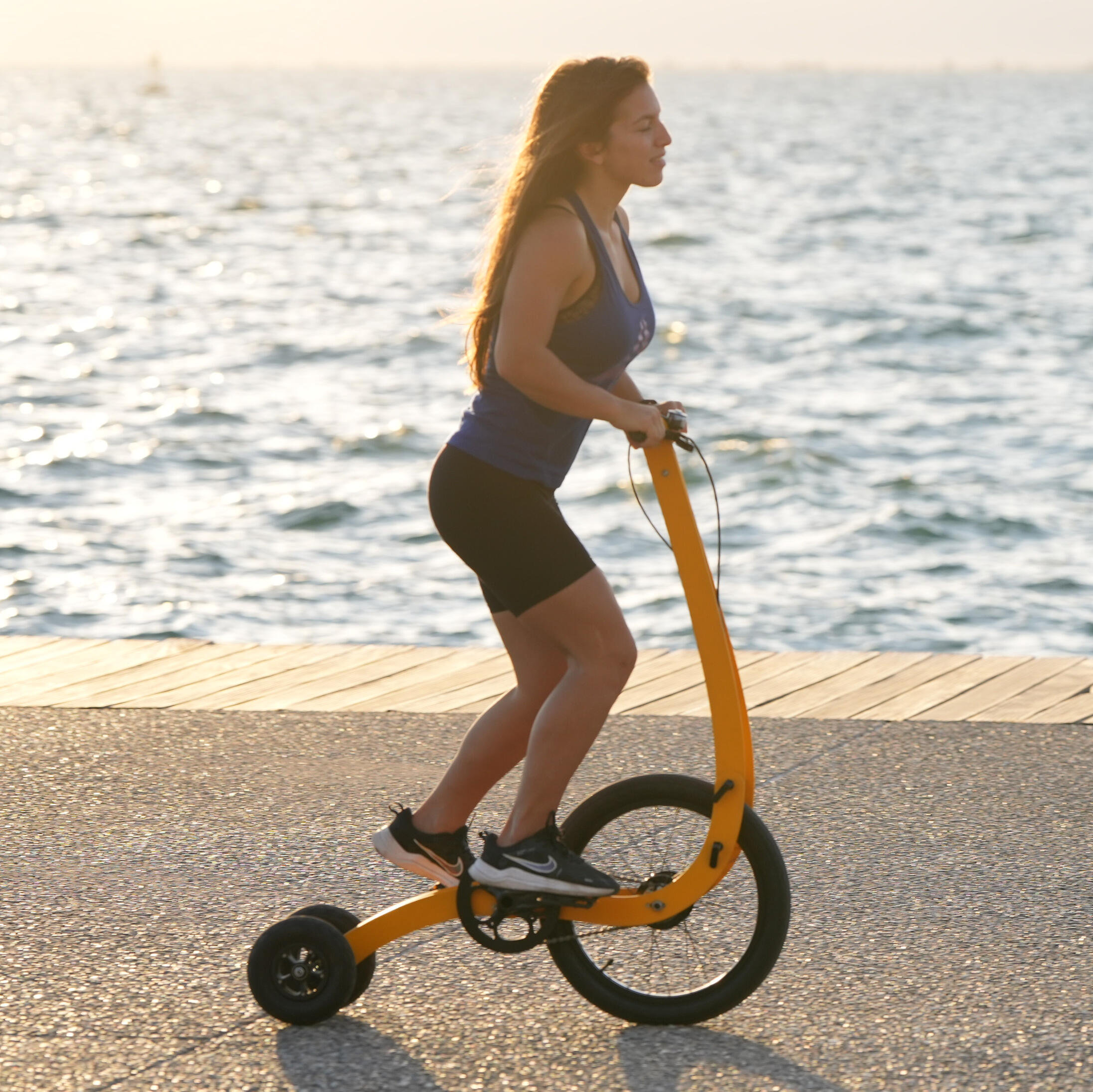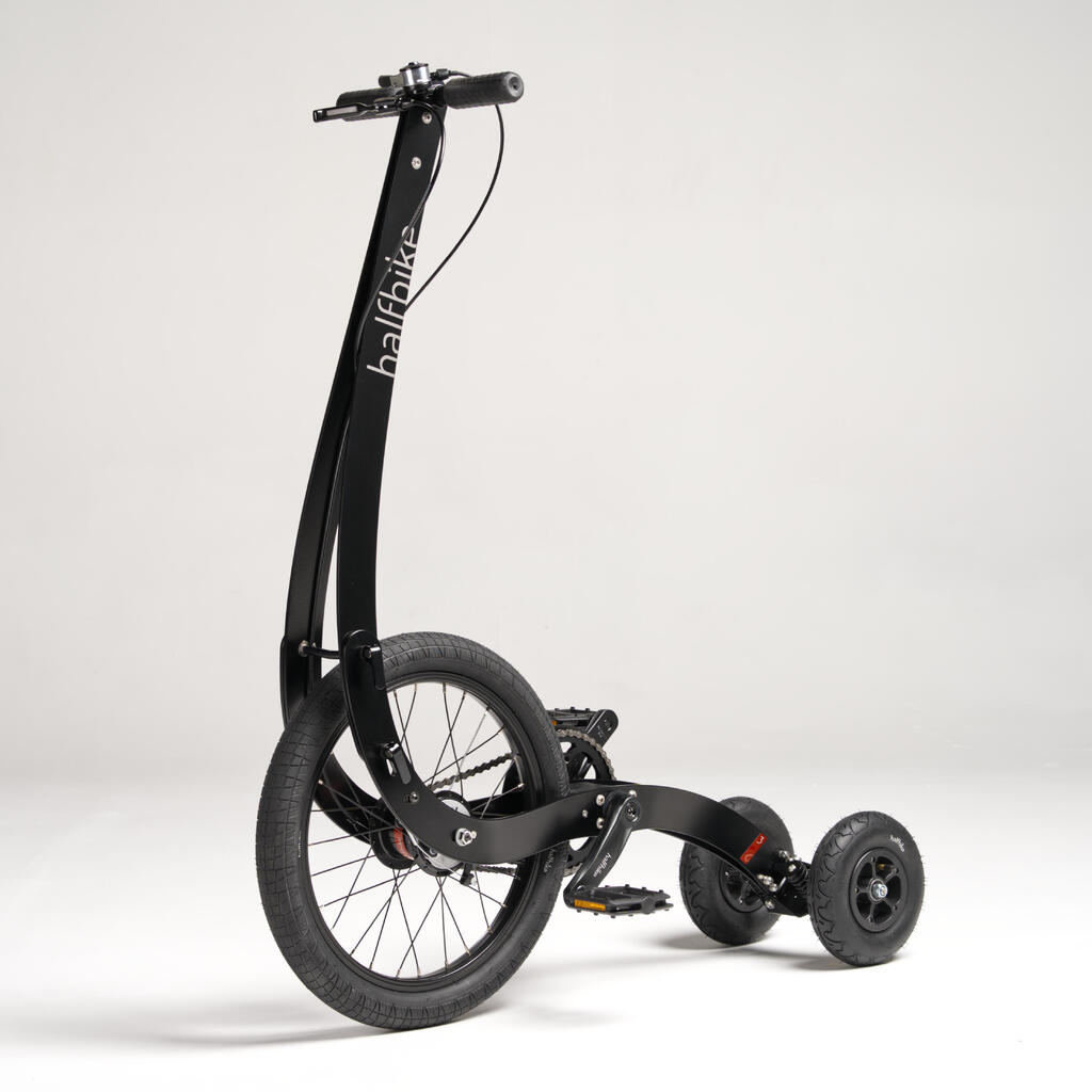 Halfbike is a compact, stand-up bicycle that combines cycling with intuitive body movement for a unique, full-body riding experience. Instead of sitting, you ride upright, engaging your legs, core, and upper body at the same time.