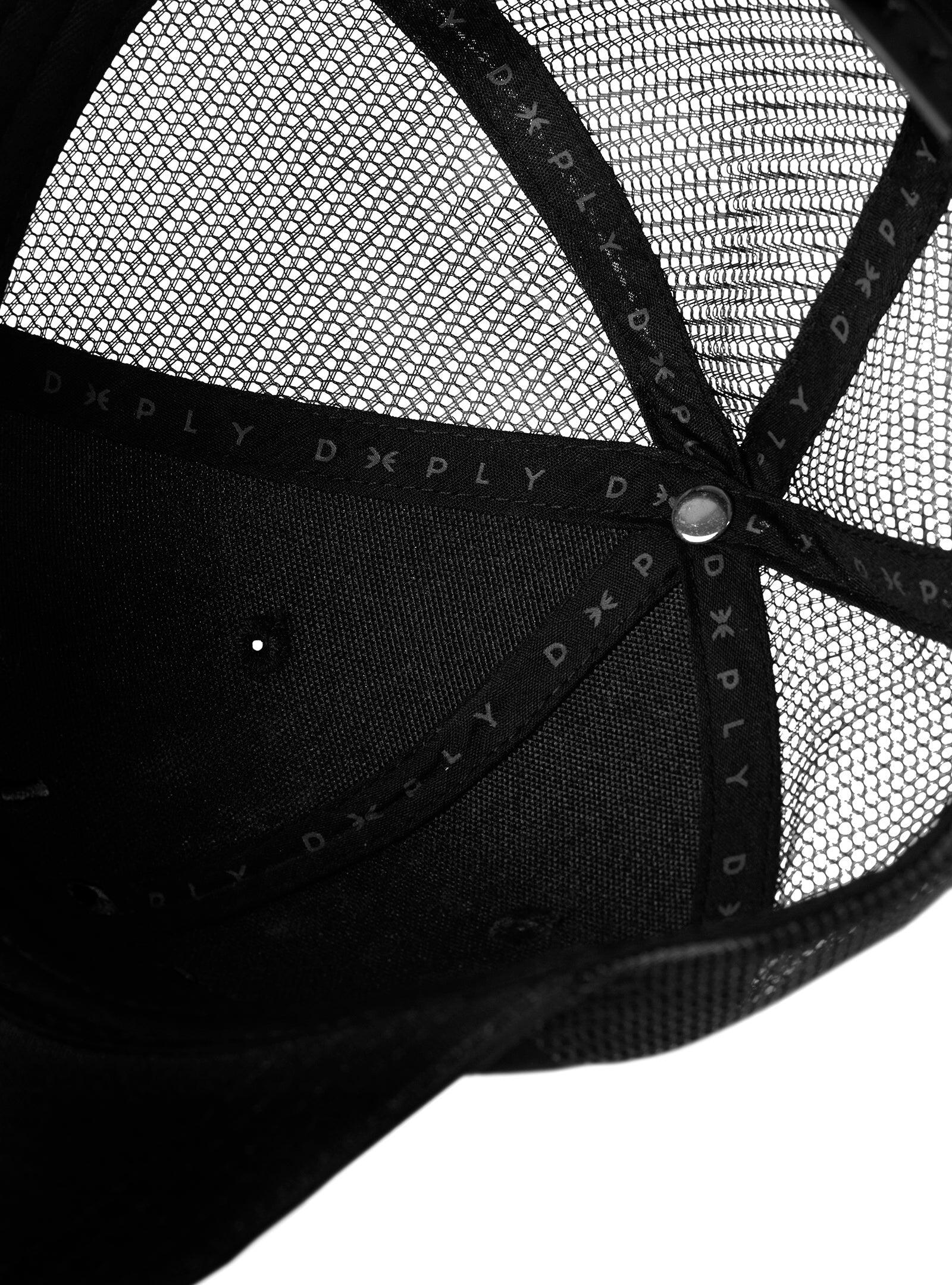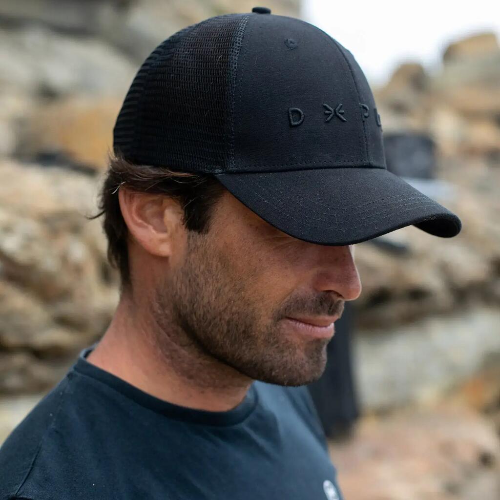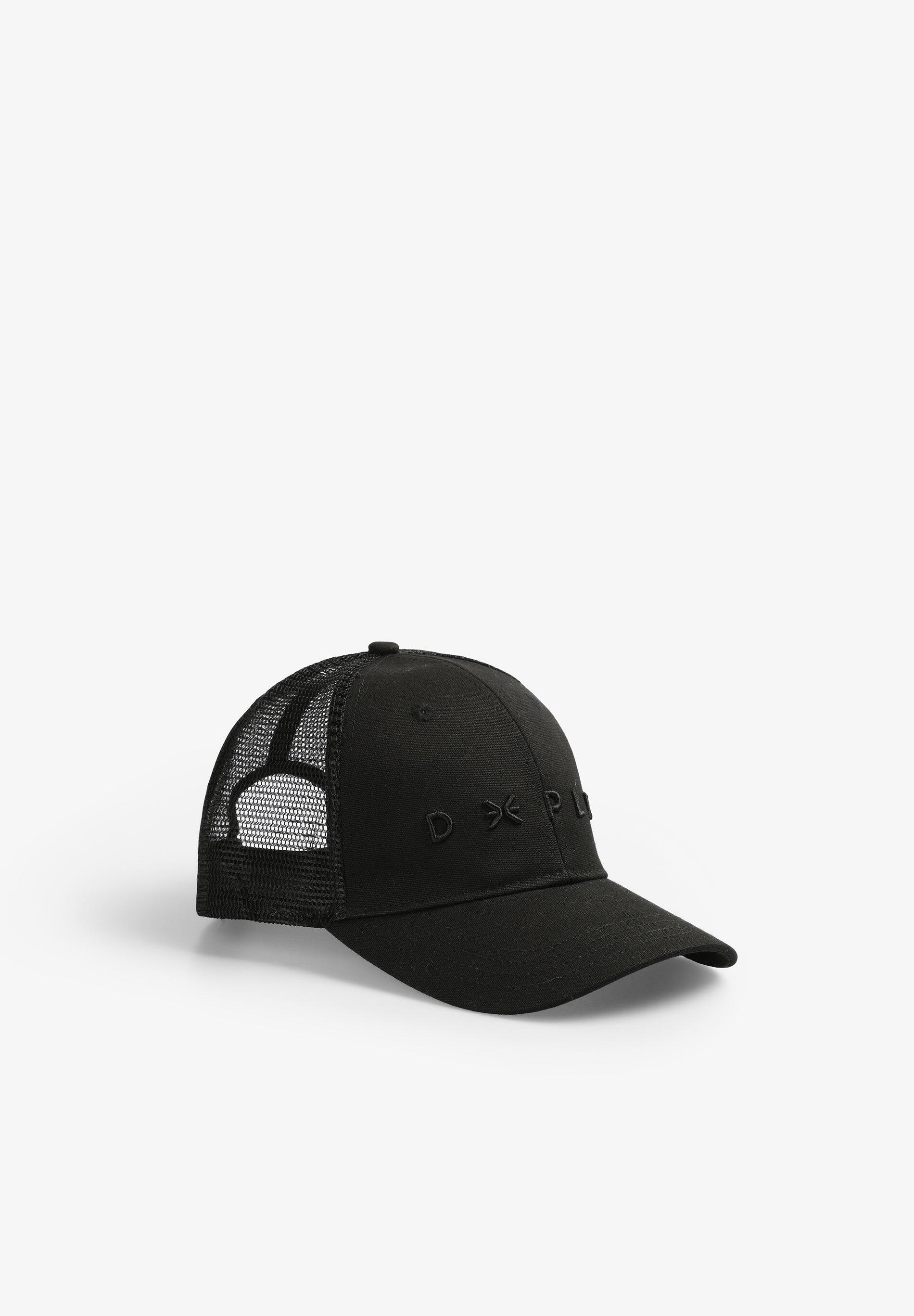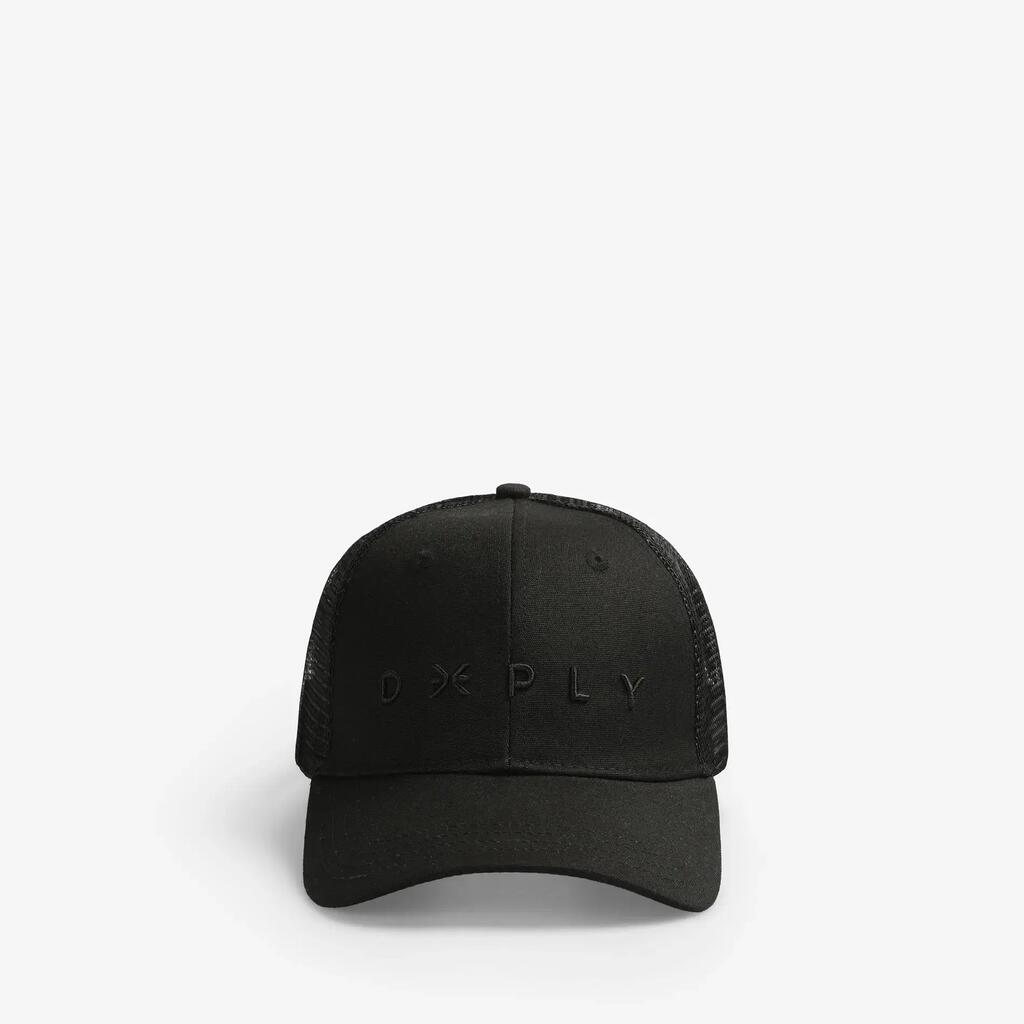 Adjustable six-panel cap with cotton front and breathable back panel, featuring embroidered Deeply logo on the visor. Perfect for hot days.