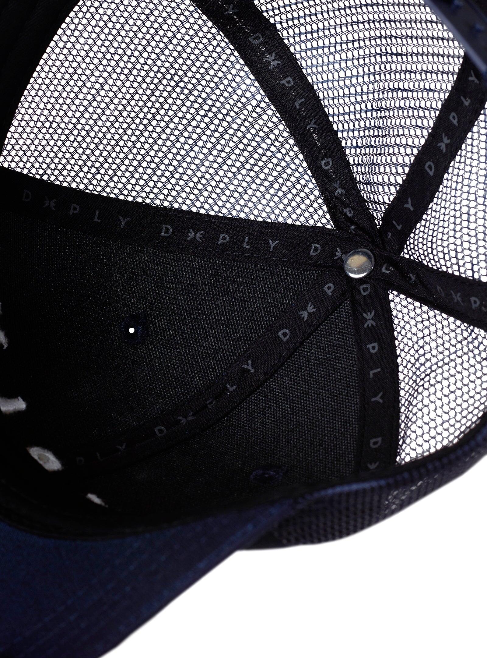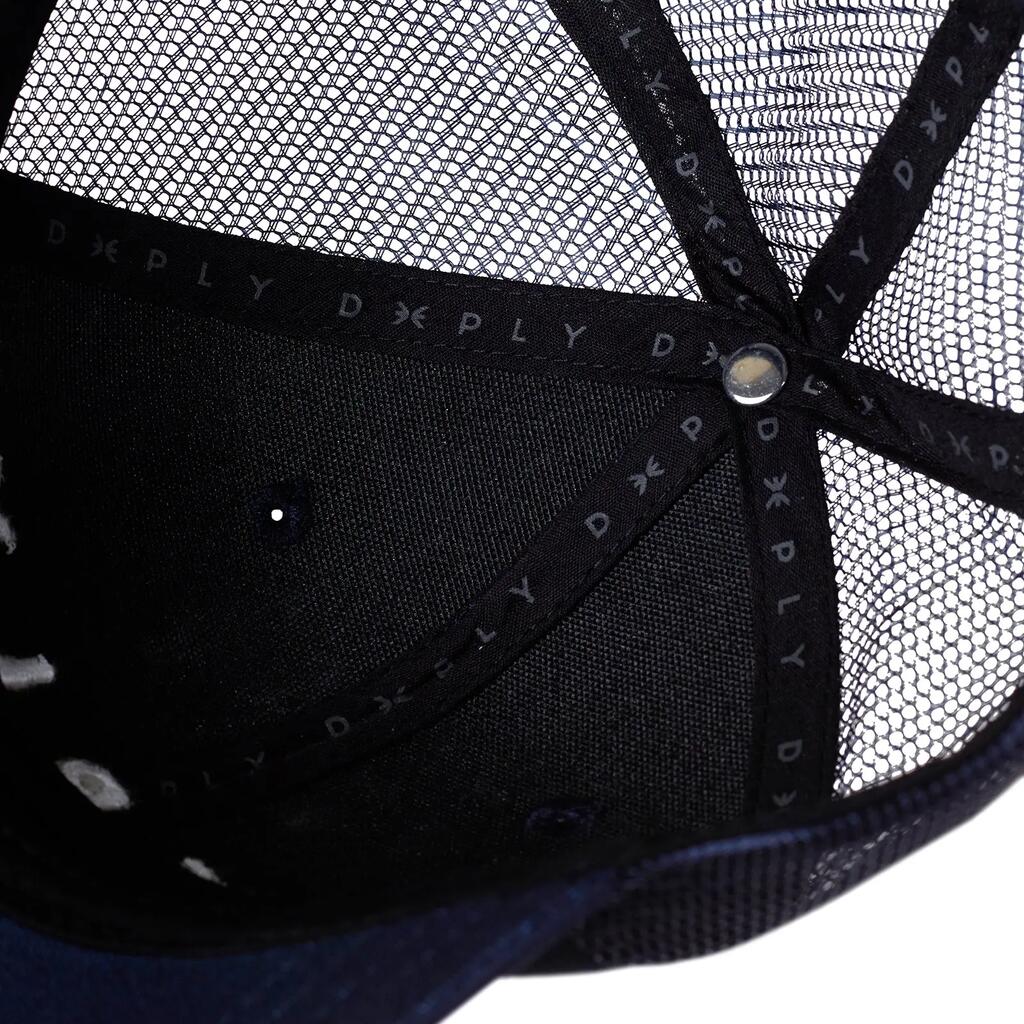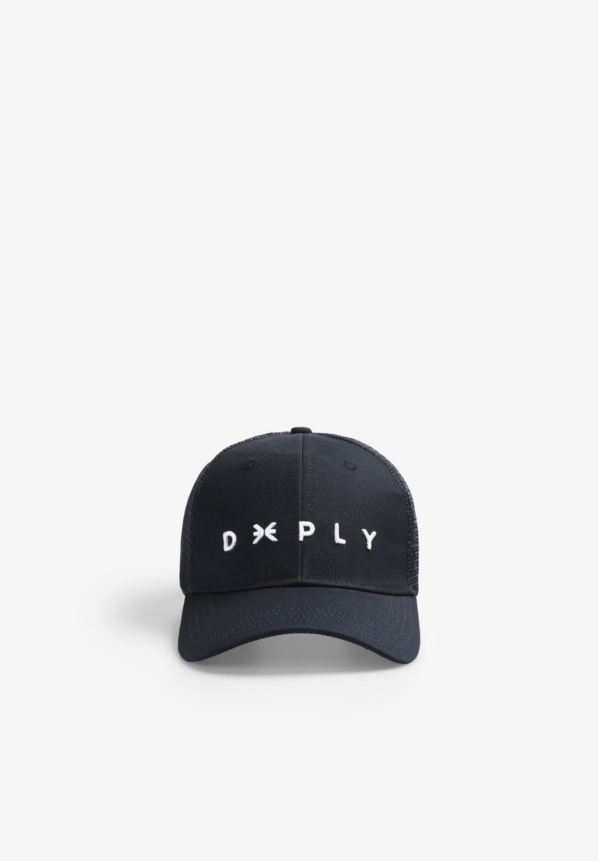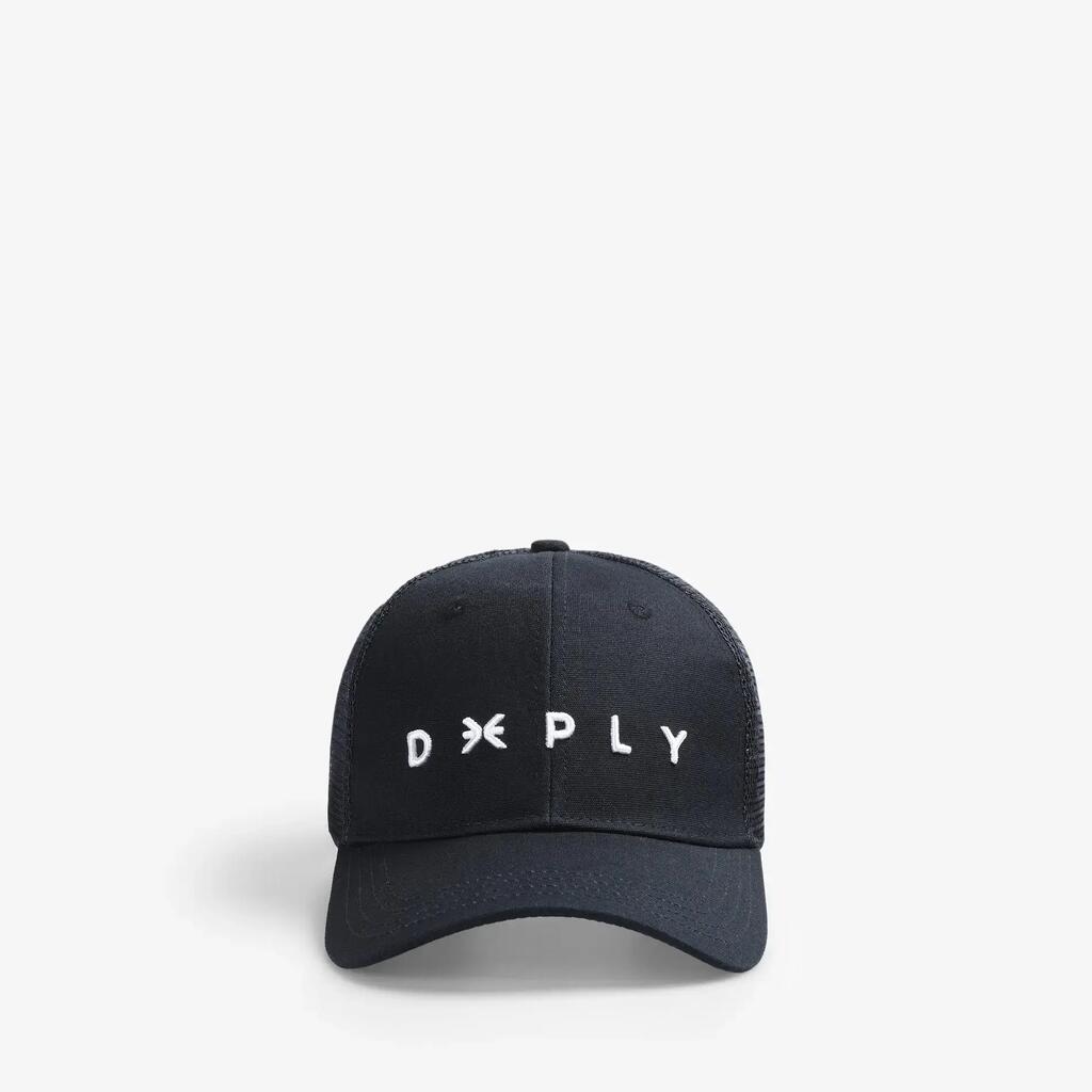 Adjustable six-panel cap with cotton front and breathable back panel, featuring embroidered Deeply logo on the visor. Perfect for hot days.